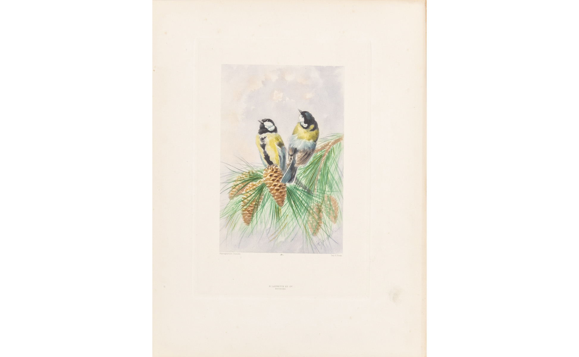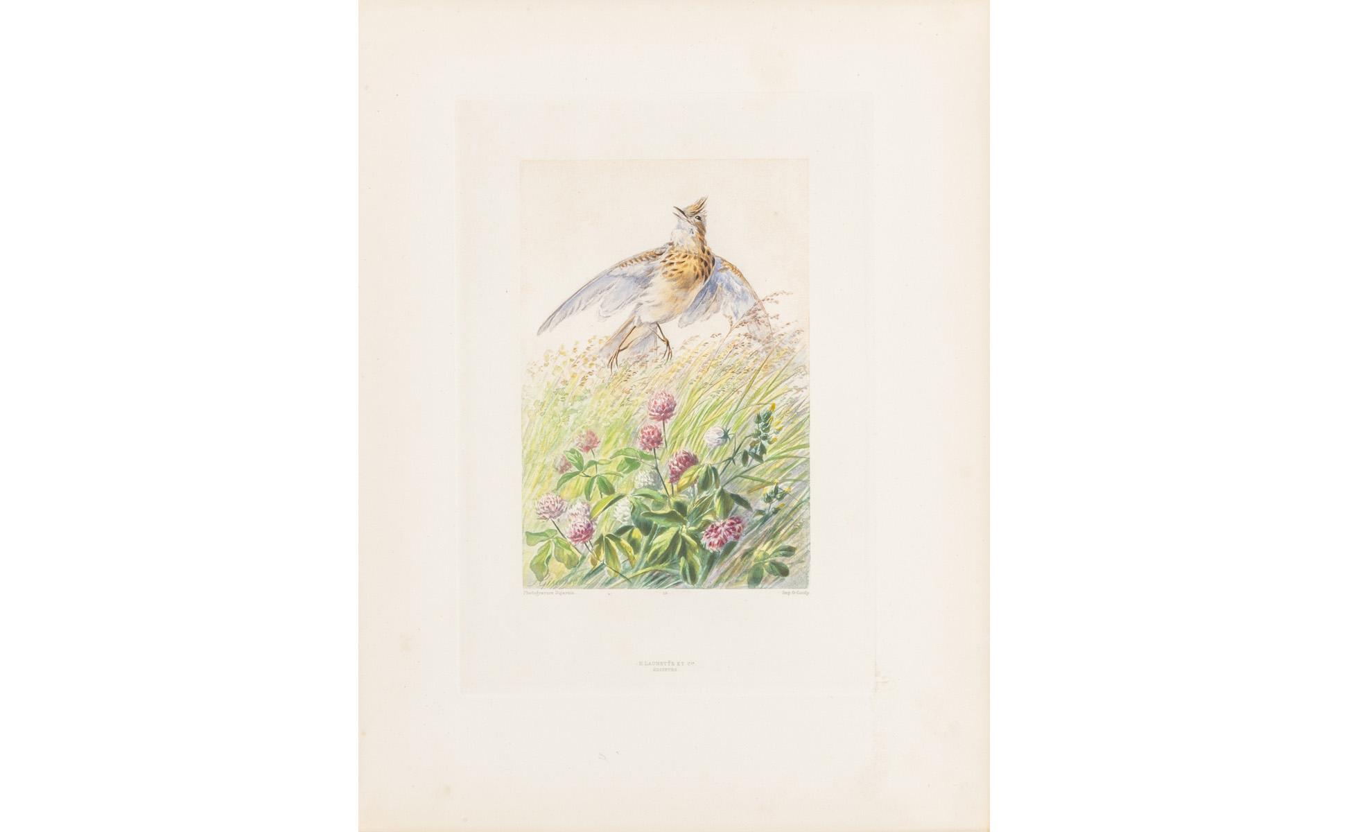 5 cartelle editoriali (mm 370x280) pp. XII 90 di testo ornate di testatine e iniziali colorate 118 fogli non numerati ornati da composizioni (testate culs-de-lampe e 20 tavole a piena pagina ritoccate a mano) tratte da acquerelli di Hector Giacomelli (1822-1904).