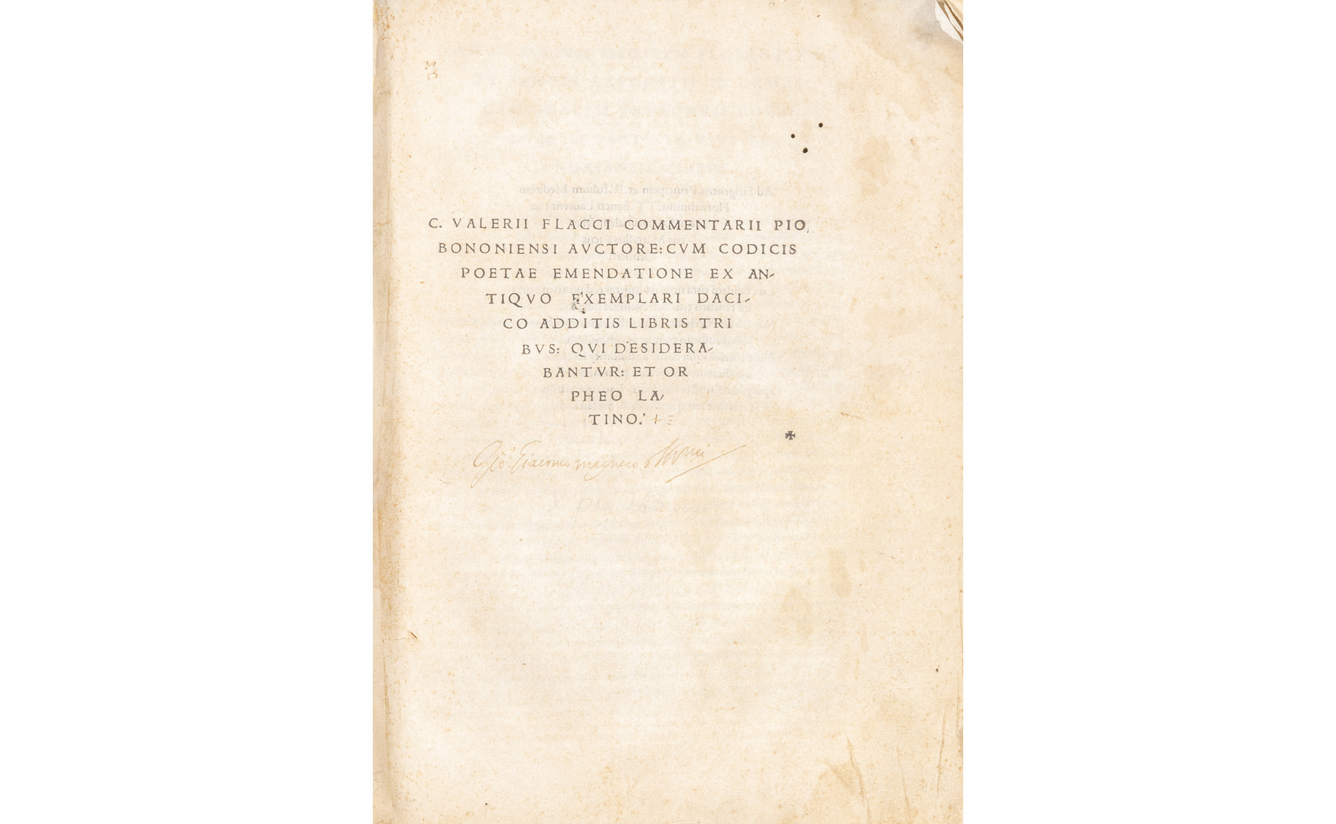 1)Valerio Massimo C. Valerii Flacci comentarii Pio Bononiensi auctore cum codicis poetae emendatione ex antiquo exemplari Dacico additis libris tribus qui desiderabatur et Orpheo Latino.