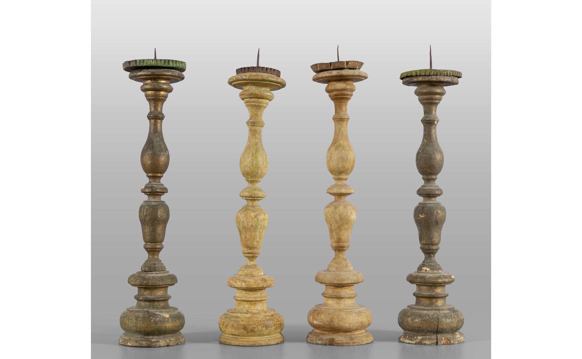Quattro candelieri in legno tornito e laccato sec.XVIII