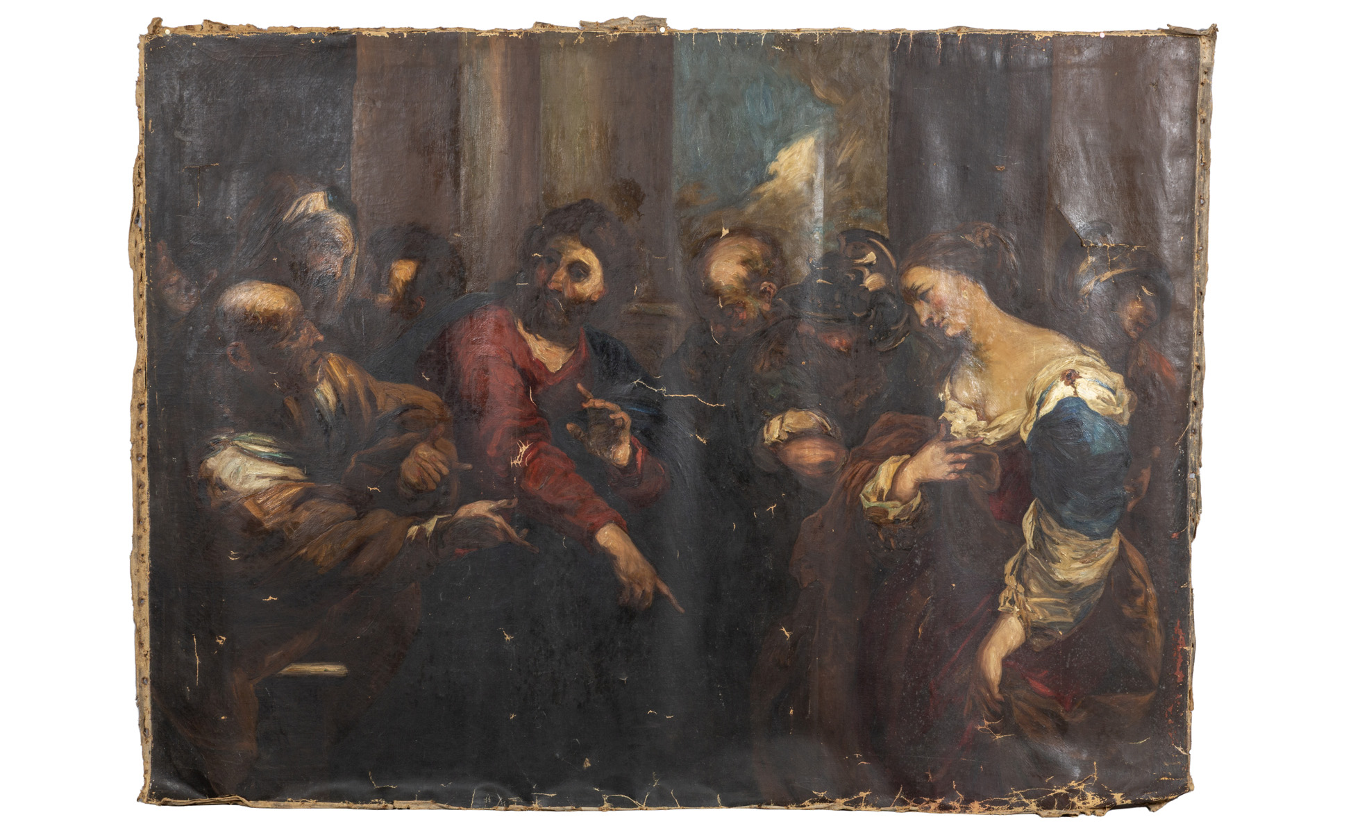 Scuola genovese sec.XIX 'Gesù e l'adultera' olio senza telaio