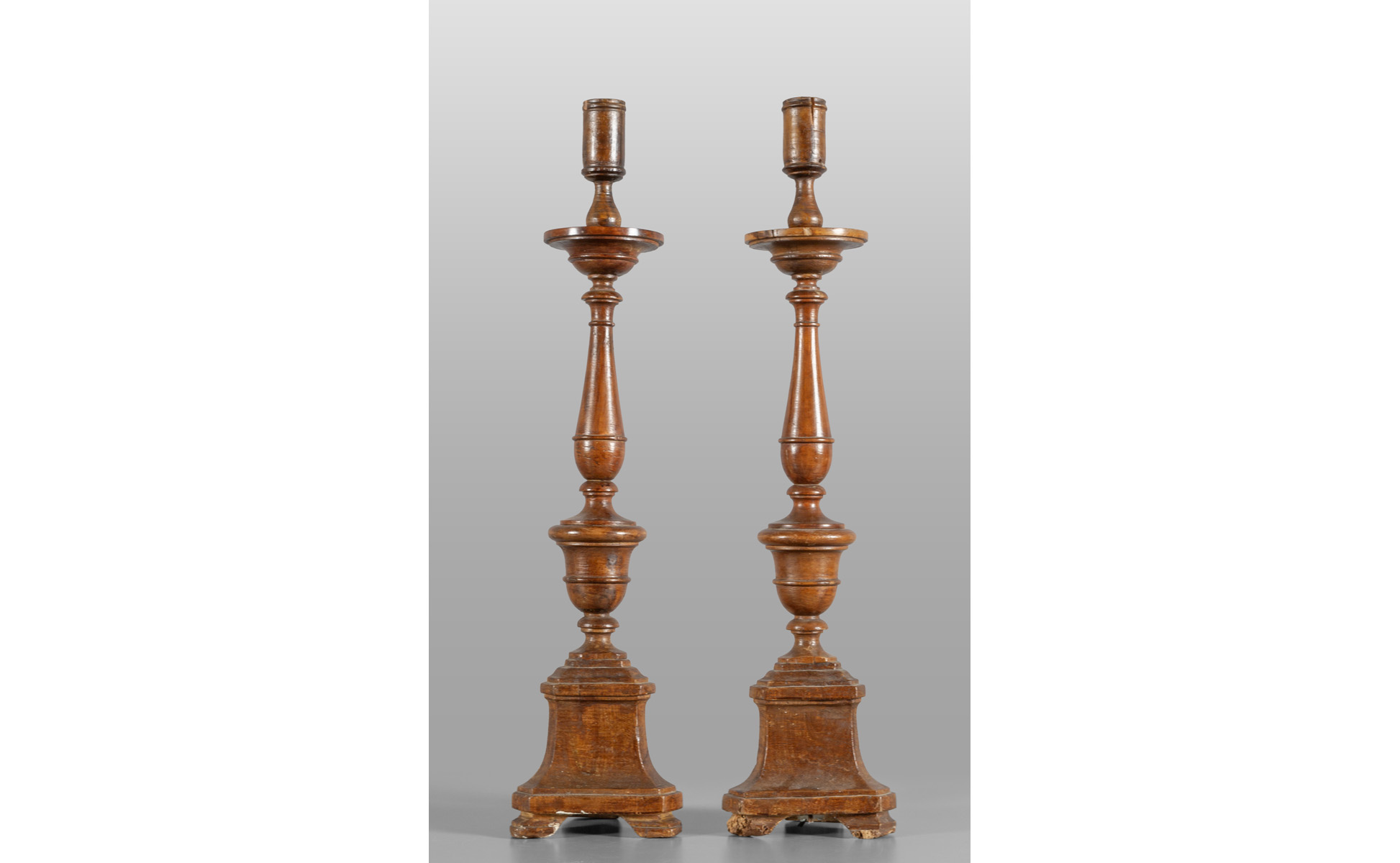 Coppia di candelieri in noce sec.XVIII