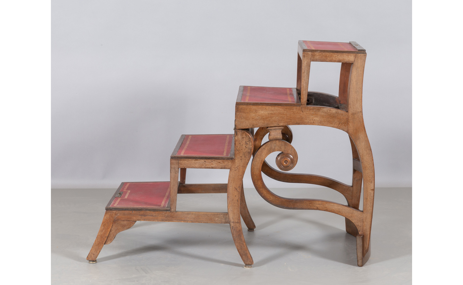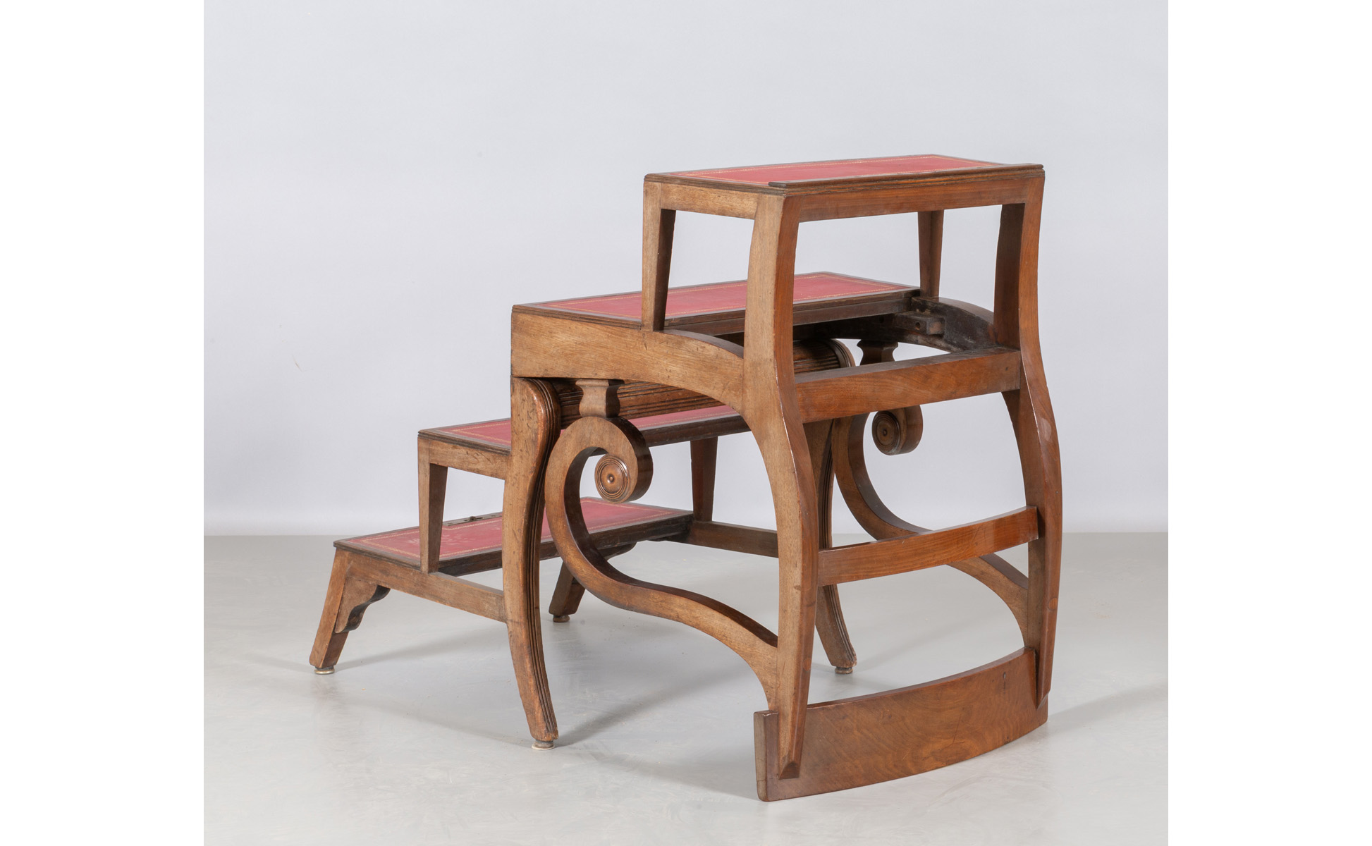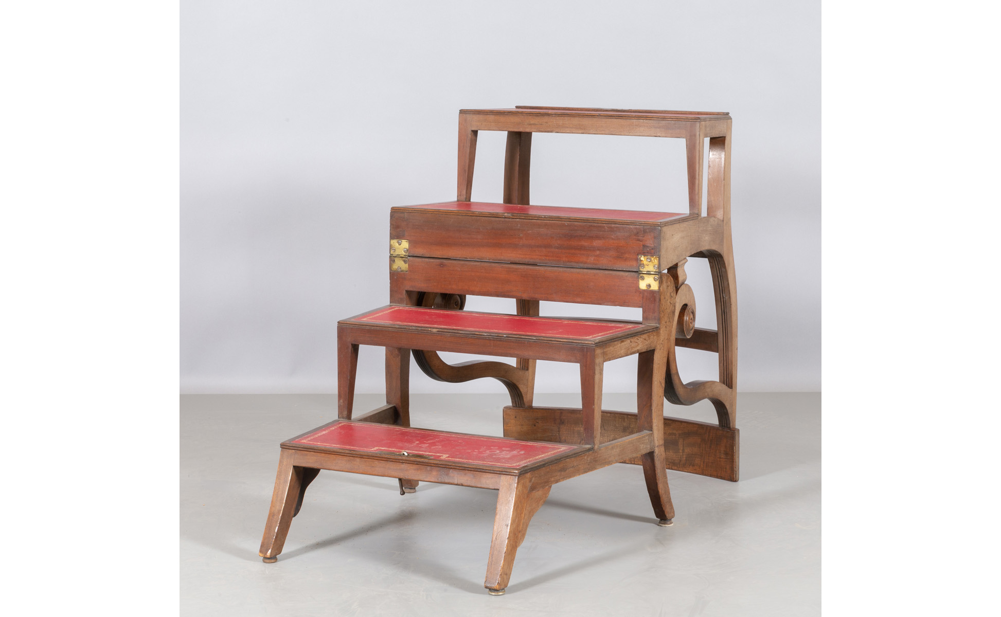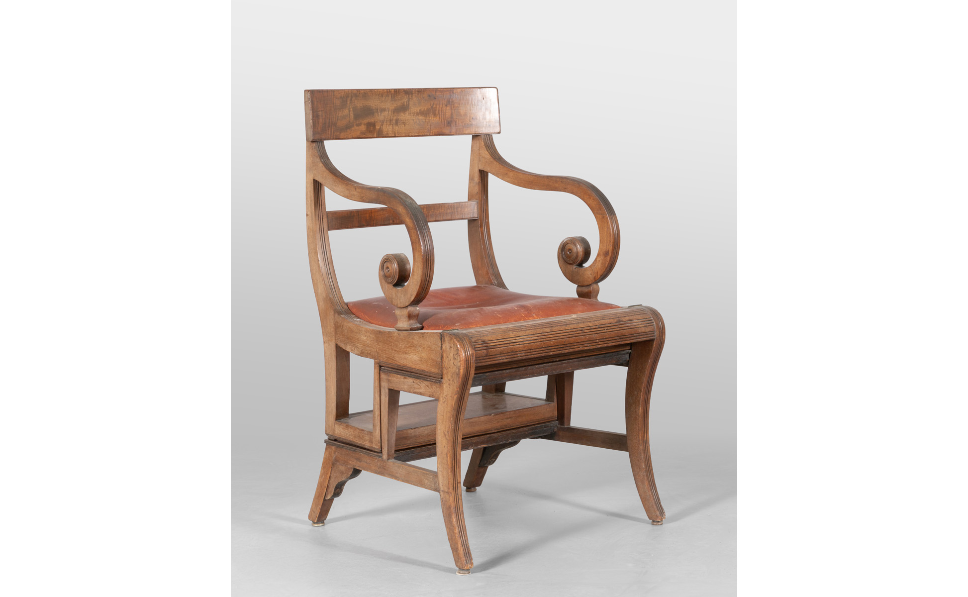Poltrona da biblioteca trasformabile in scaletta in mogano Inghilterra sec.XIX