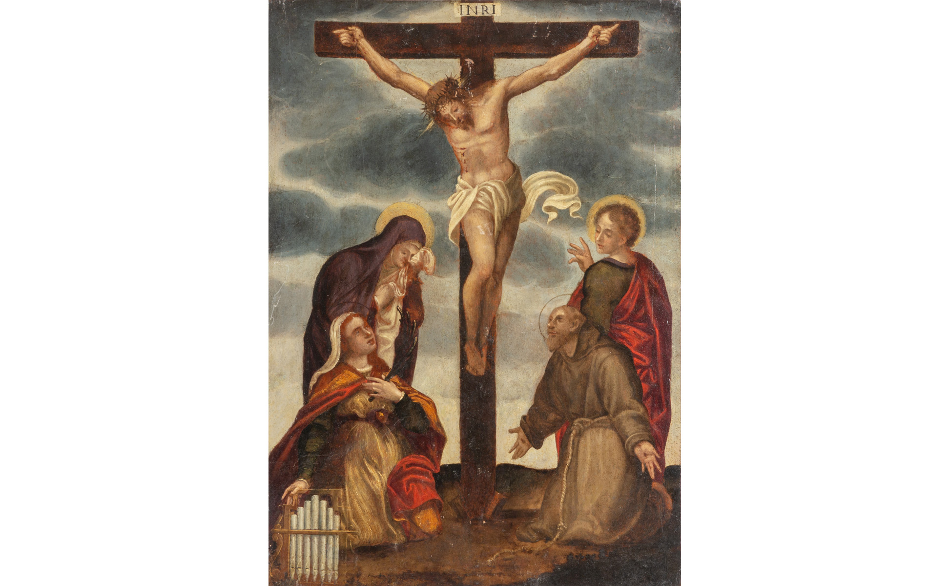 Scuola italiana sec.XVIII 'Compianto sul Cristo Crocefisso' olio su tavola