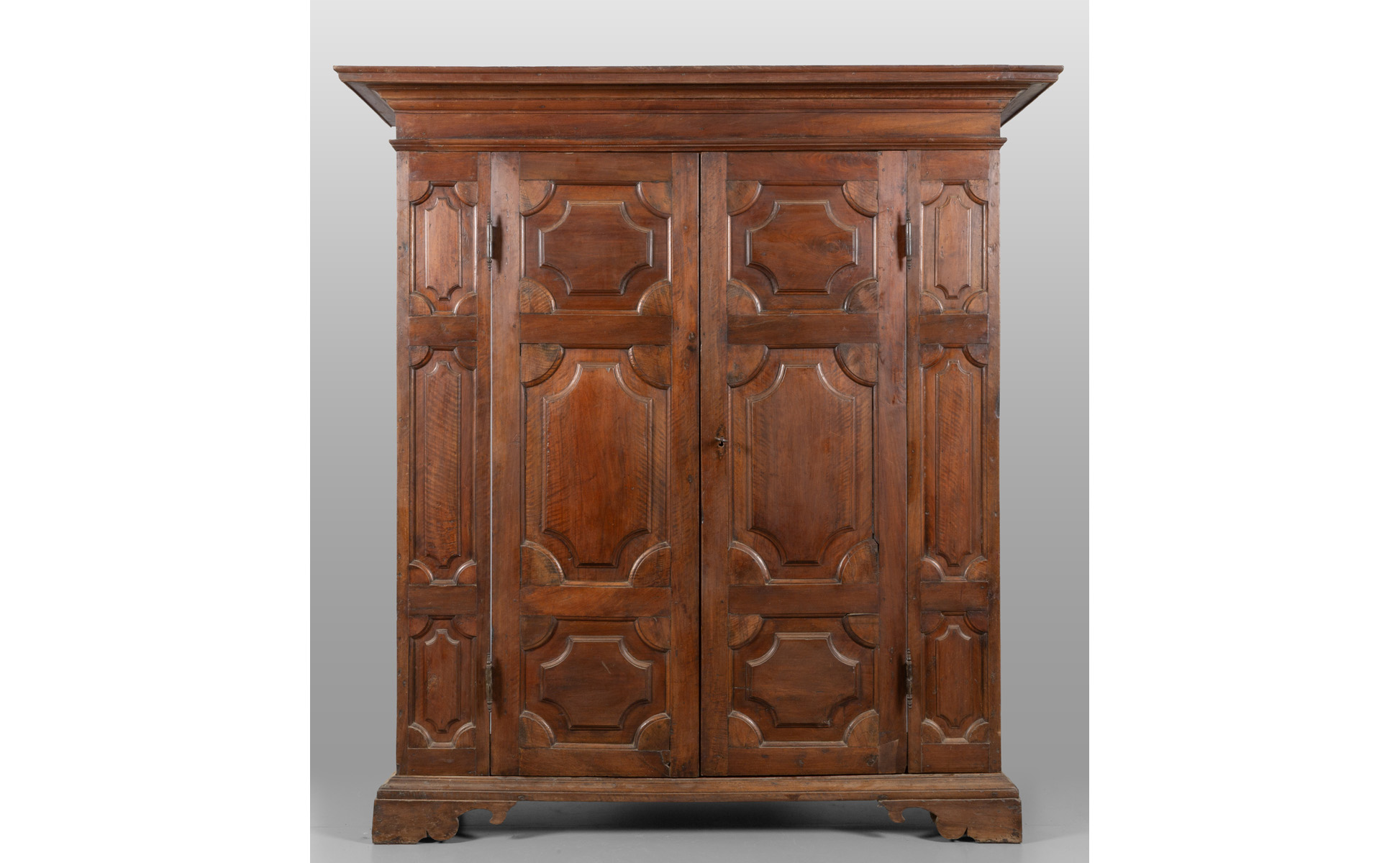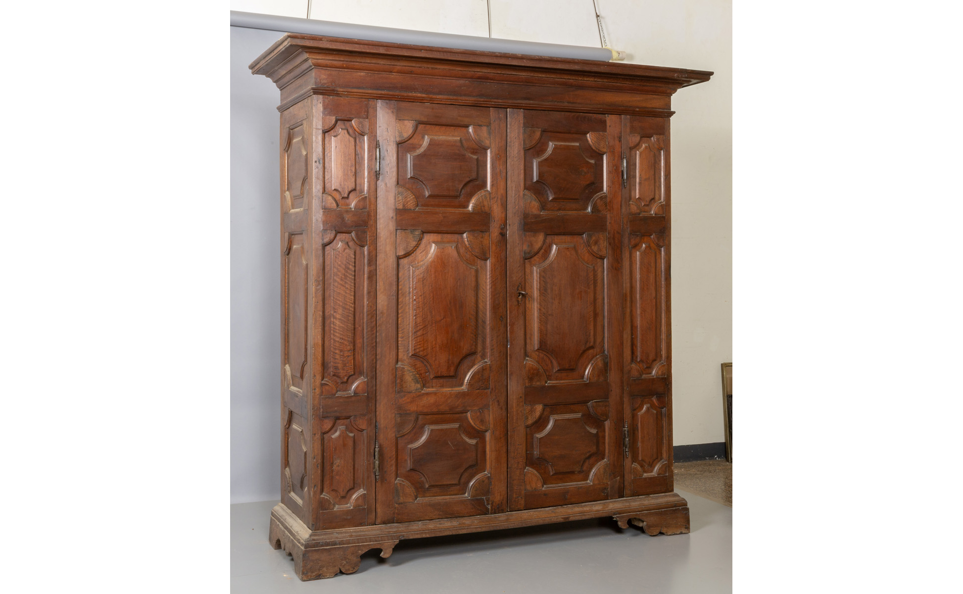 Armadio in noce intagliato a rombi due sportelli Lombardia sec.XVIII