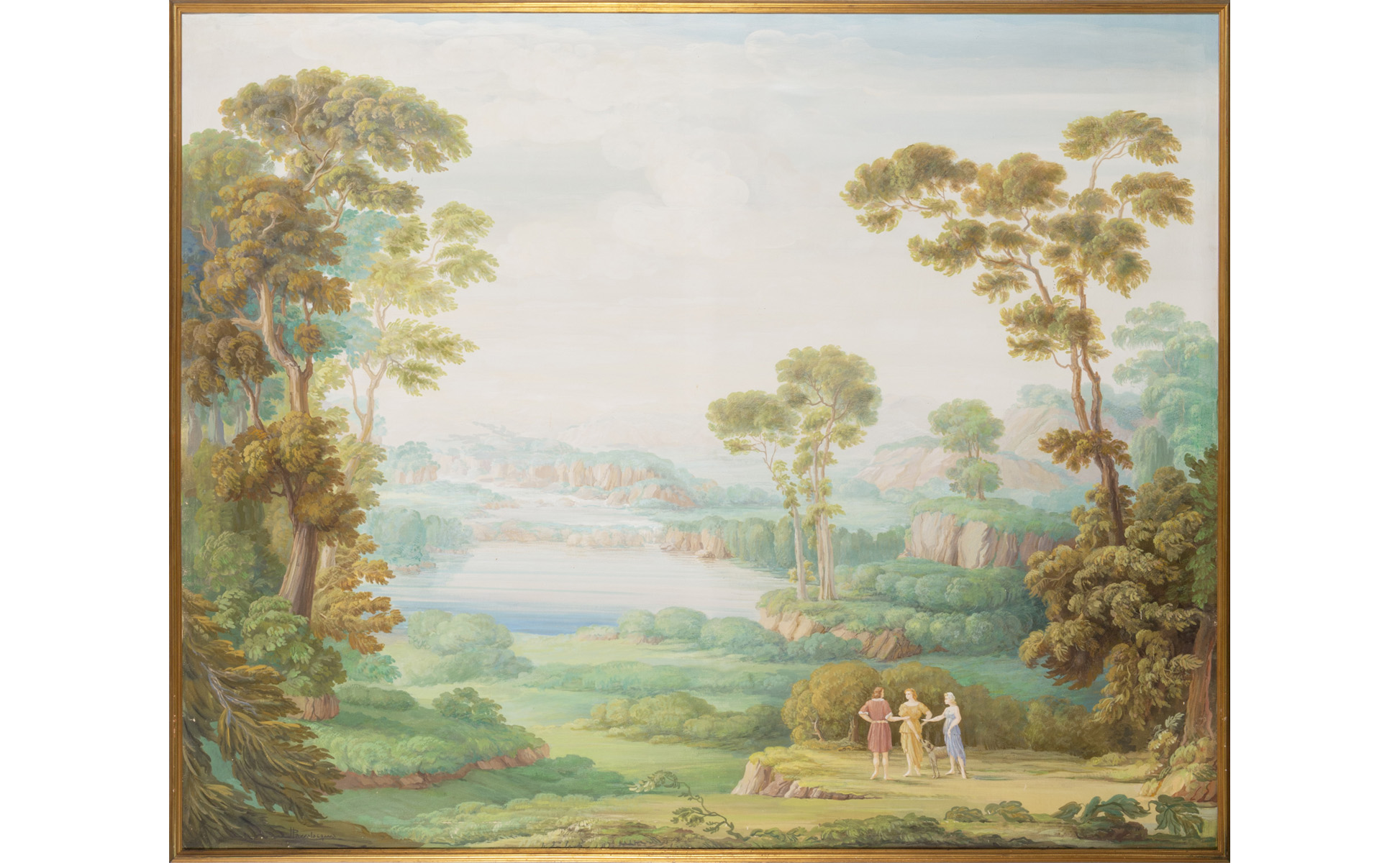 'Paesaggio con fiume' papier paint inizi sec.XX
