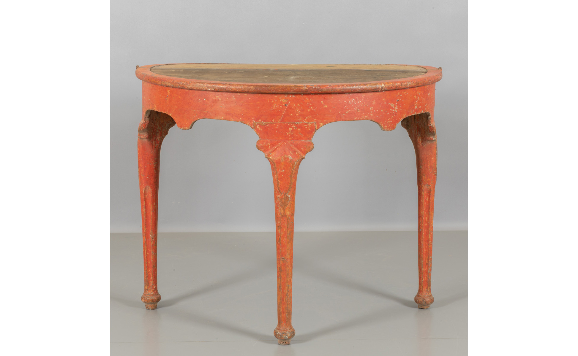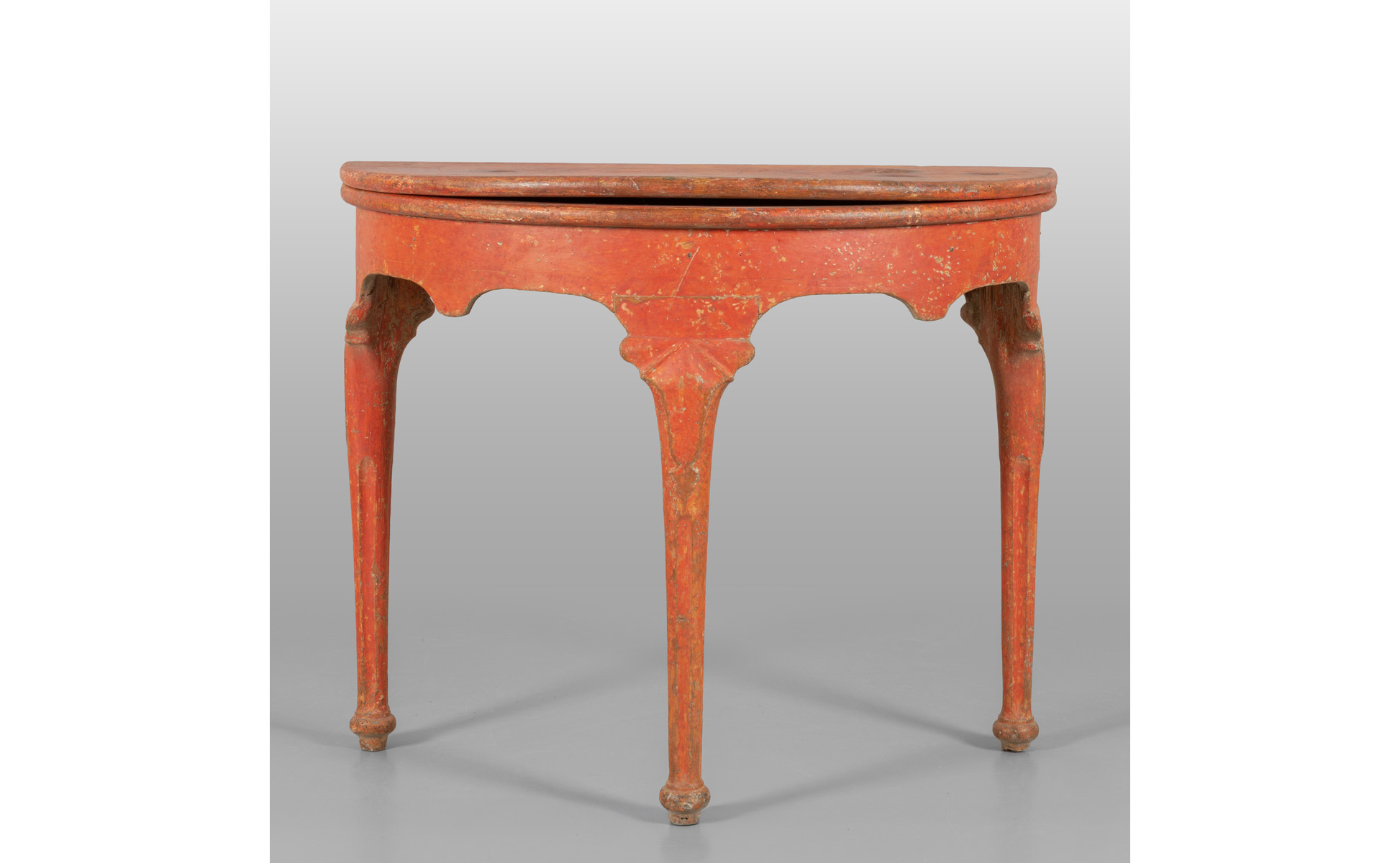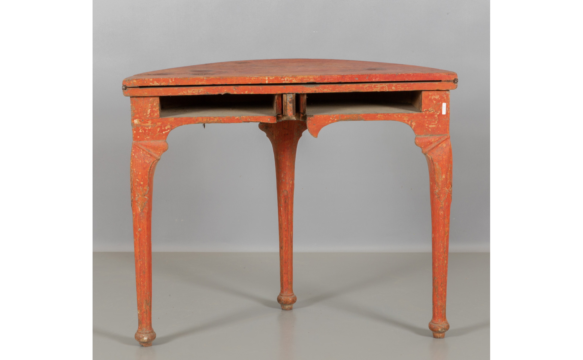 Tavolino a mezza luna laccato rosso con piano ribaltabile sec XVIII
