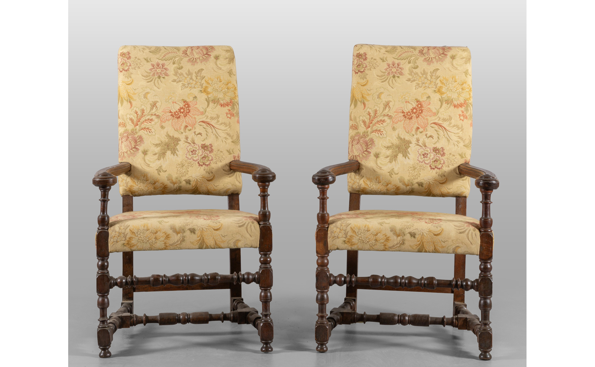 Coppia di grandi poltrone a rocchetto in noce Toscana II metà sec.XVII