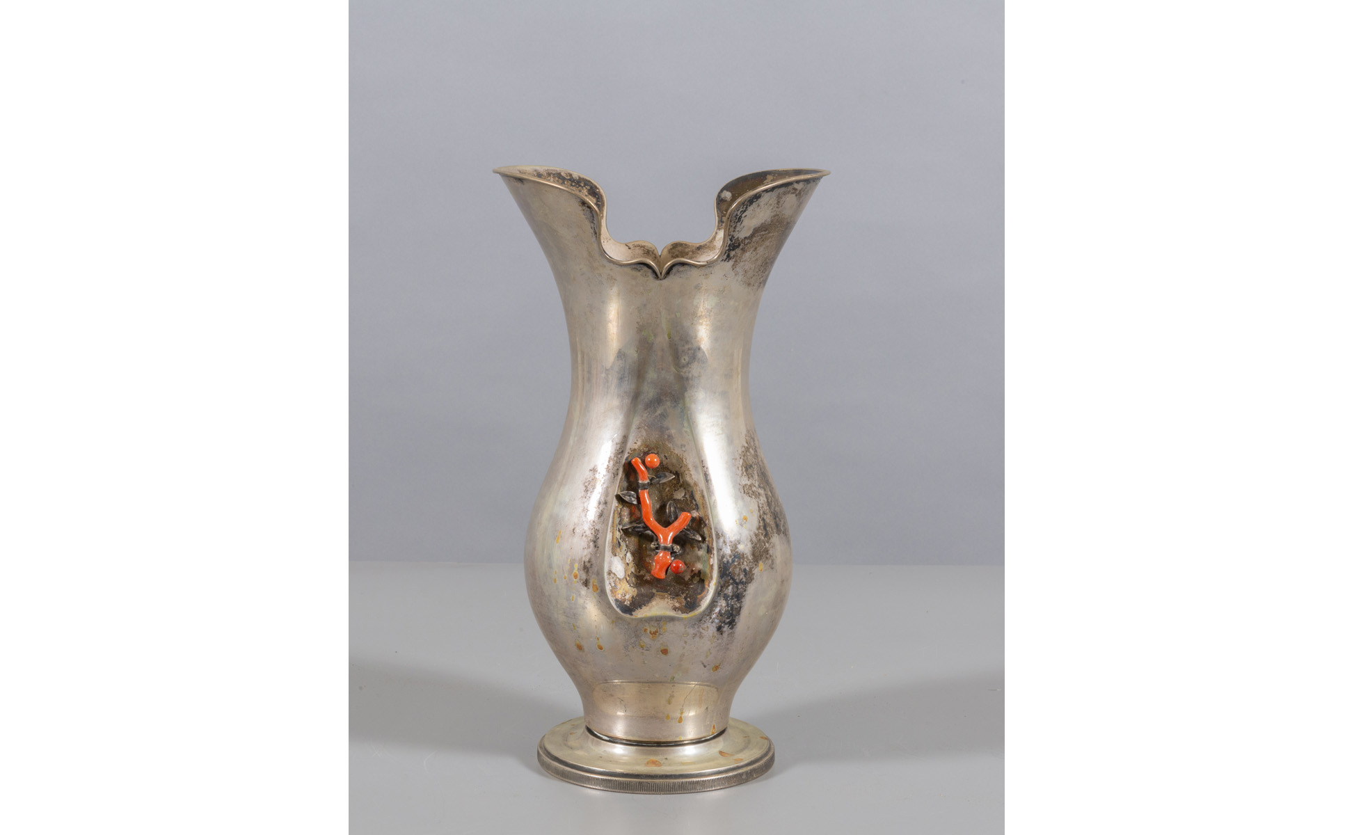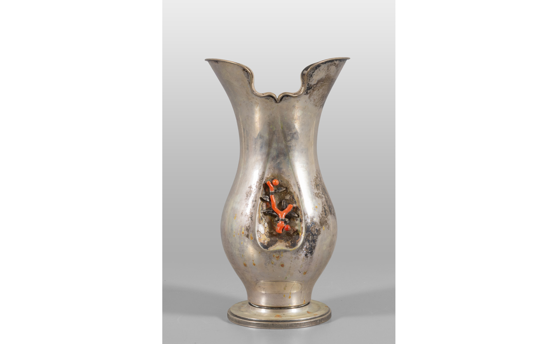 Vaso in argento con applicazioni in corallo argentiere d'Arte Milano