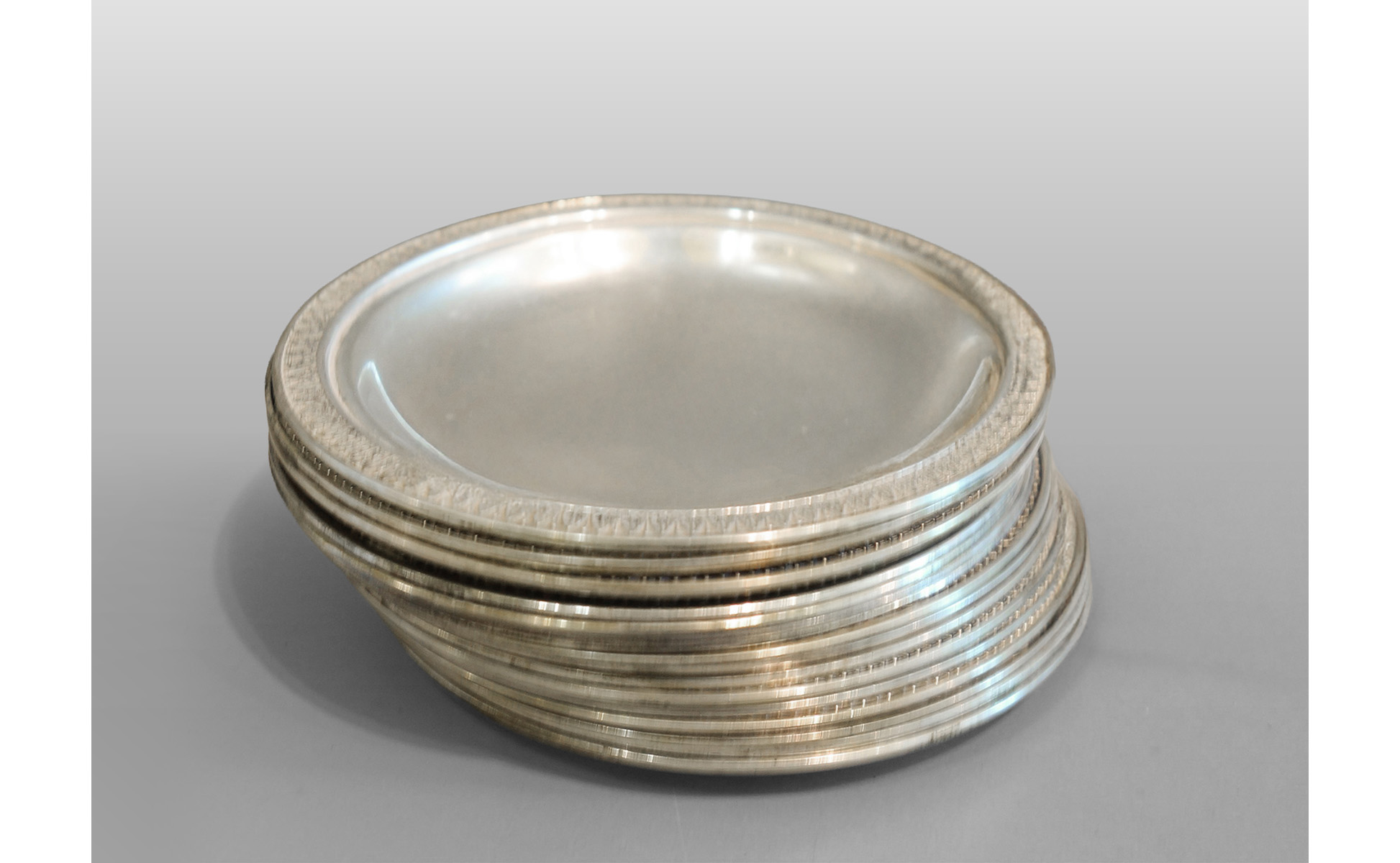 Dodici più quattro sottobicchieri in argento decorati con palmette