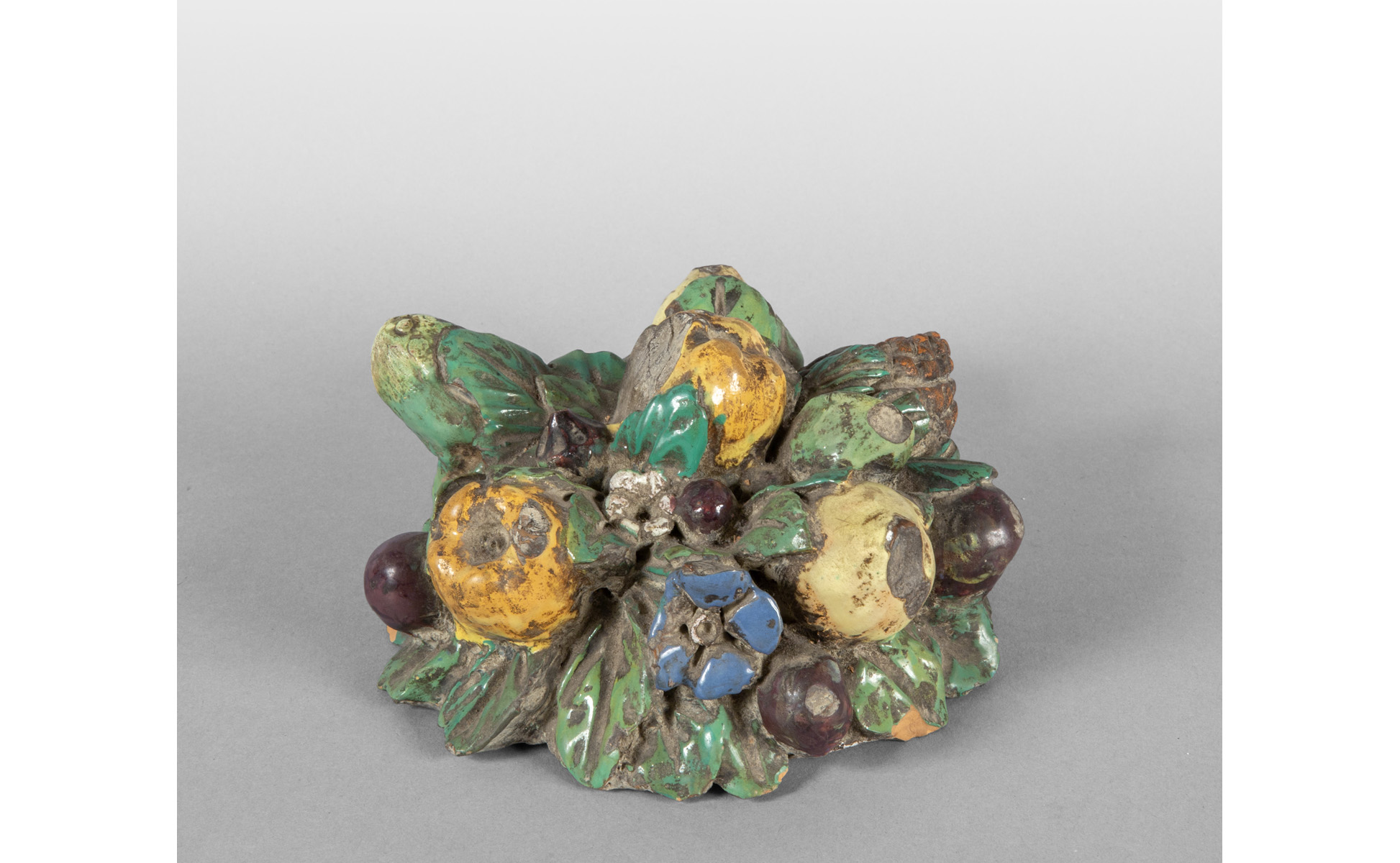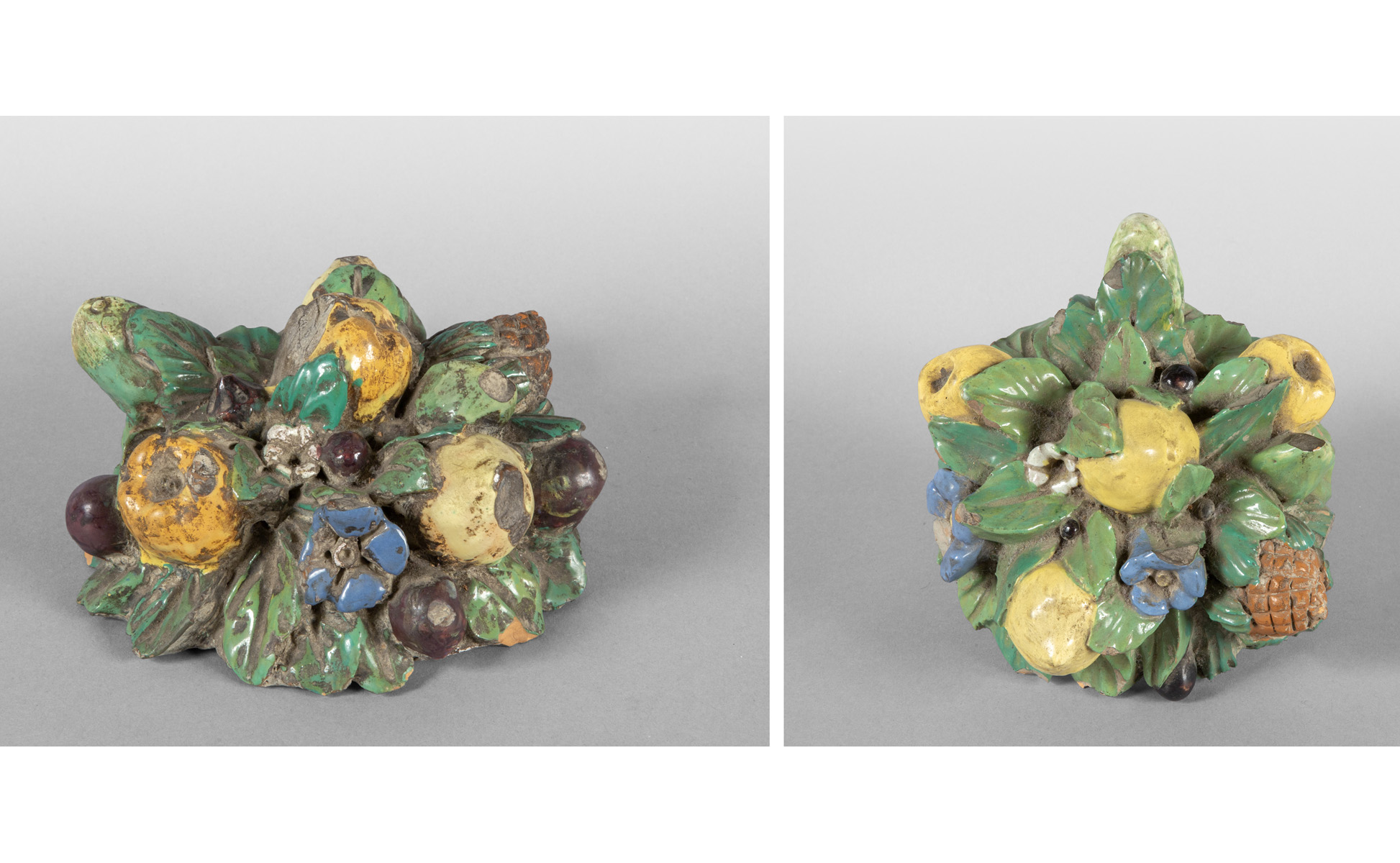 Coppia di tappi robbiani in maiolica invetriata e dipinta