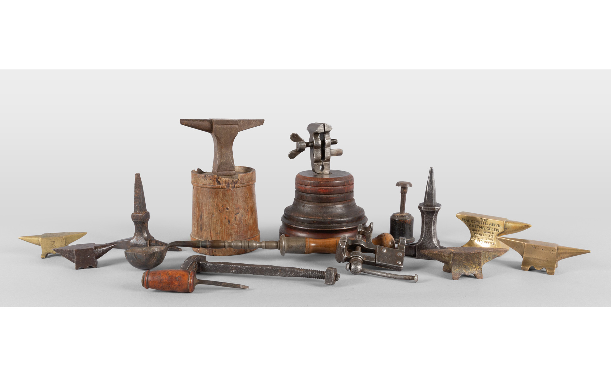 Quattordici antichi strumenti da orefice in ferro e bronzo