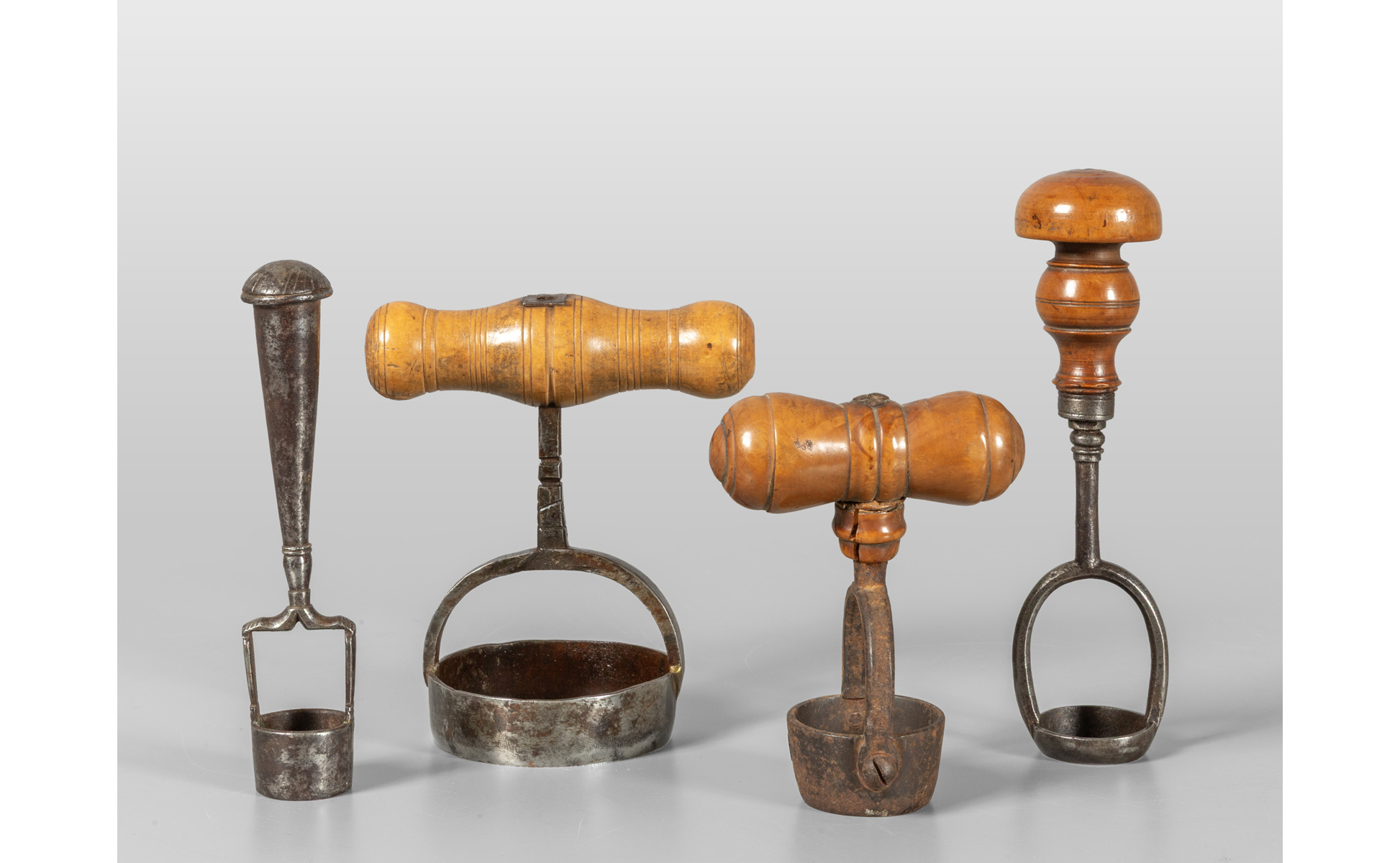 Quattro ferri per ostie di cui tre con manici in bosso sec.XVIII