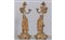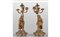 Coppia di candelabri a quattro luci in antimonio dorato raffiguranti guerrieri fine sec.XIX