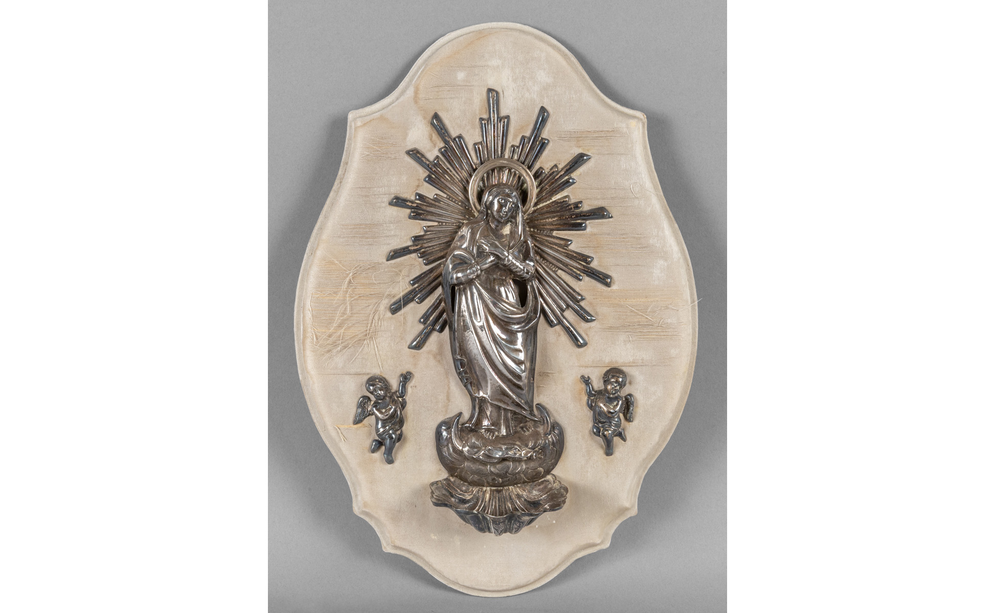 Acquasantiera in argento con Madonna e angeli sec.XIX