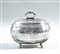 di forma ovale bombata incisa con volute, girali e guillochè, presa sagomata, quattro piedini mossi, interno vermeille