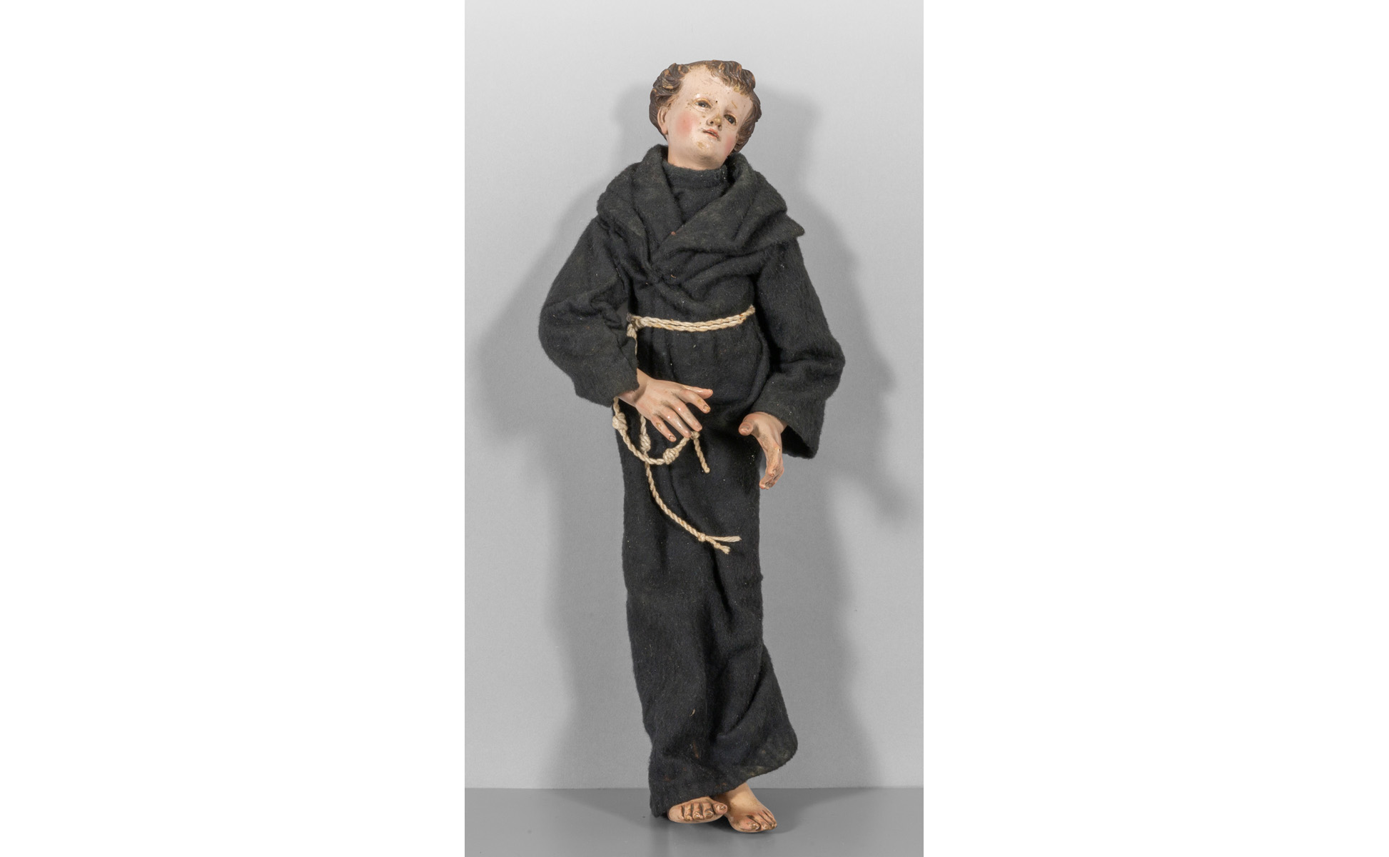 Giovane fraticello scultura da presepe in legno intagliato e laccato Genova sec.XVIII