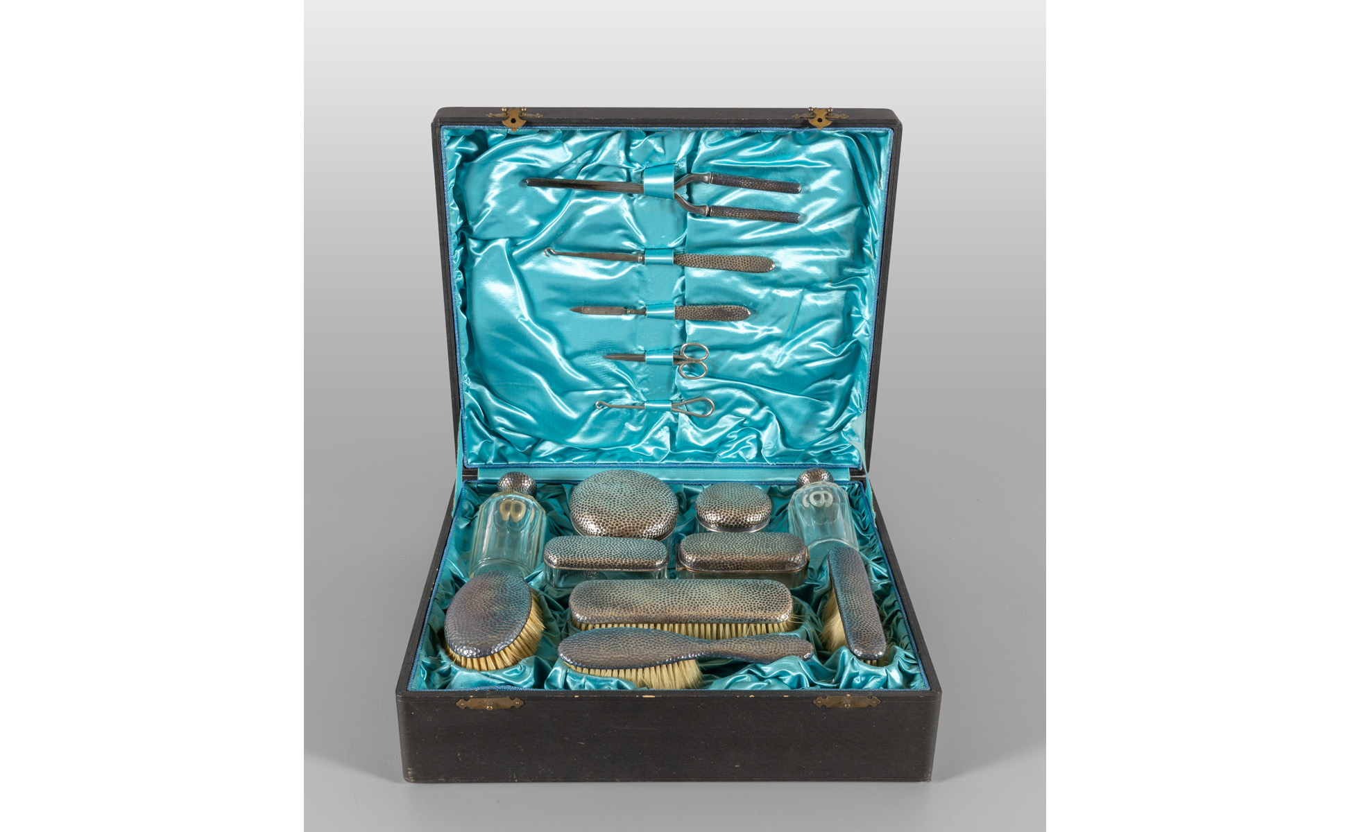Servizio da toilette in argento nella sua scatola originale inizi sec.XX