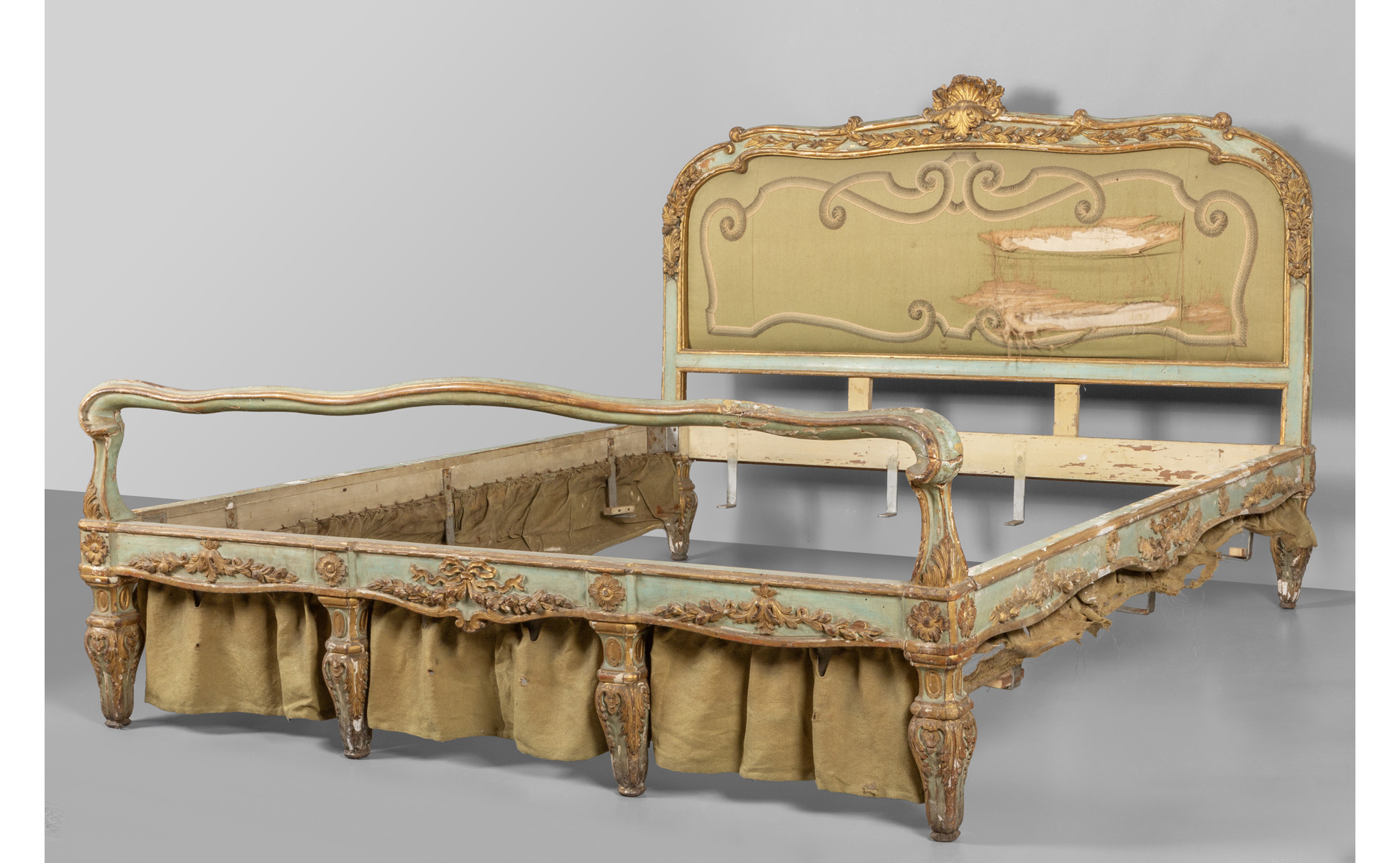 Letto Luigi XV in legno finemente intagliato laccato e dorato sec.XVIII