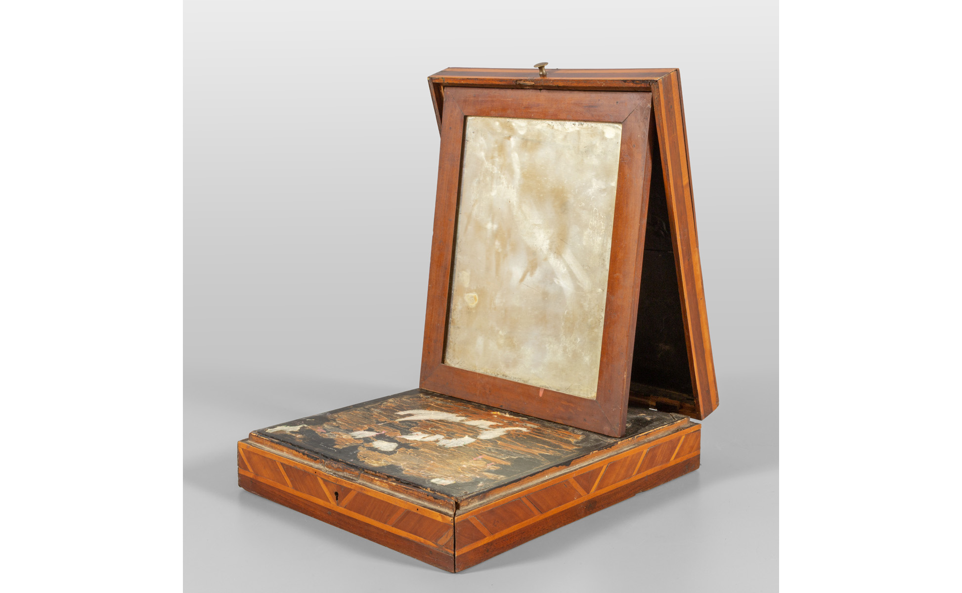 Toilette da viaggio lastronata in palissandro e bois de rose un cassetto nella fascia inizi sec.XIX
