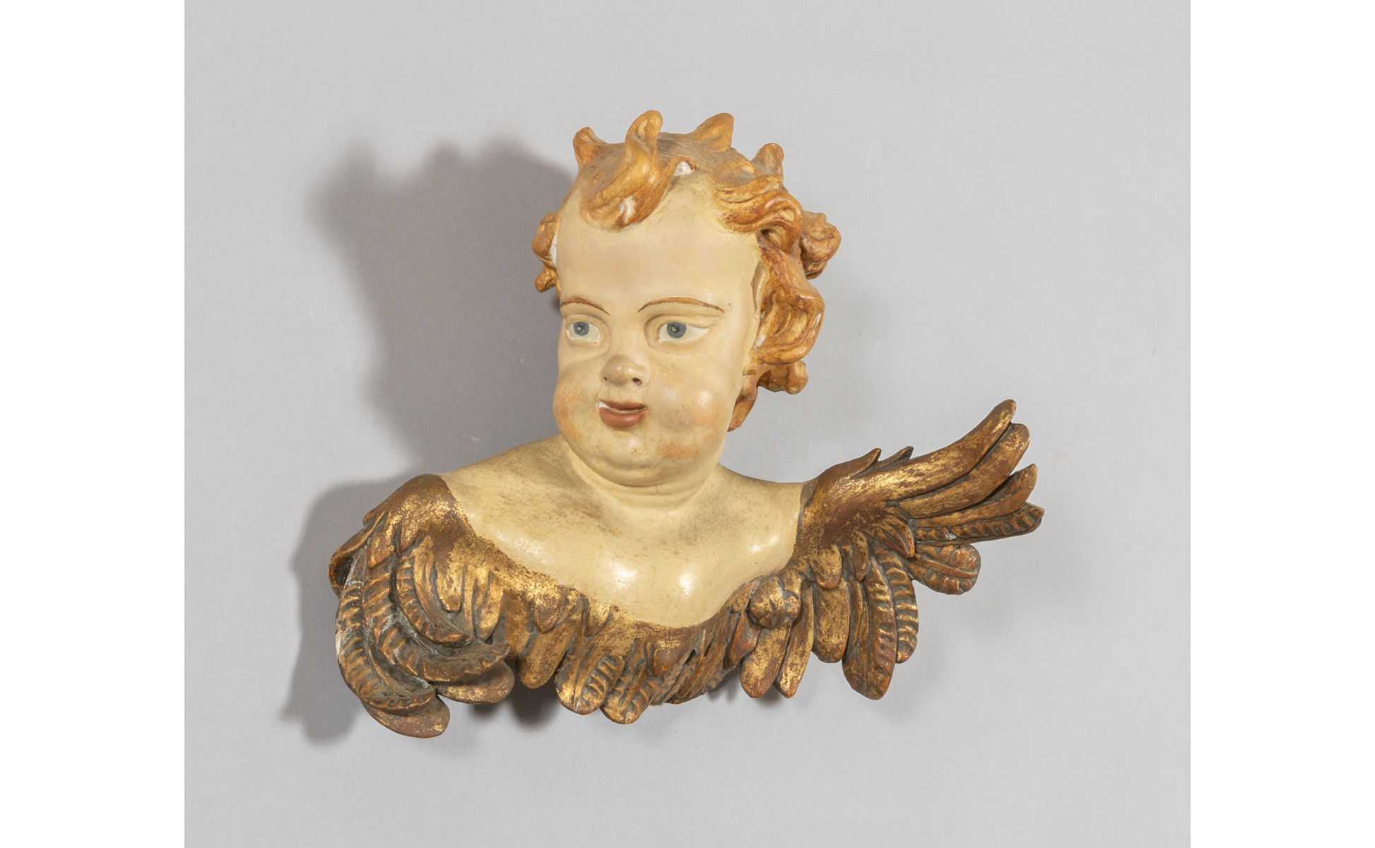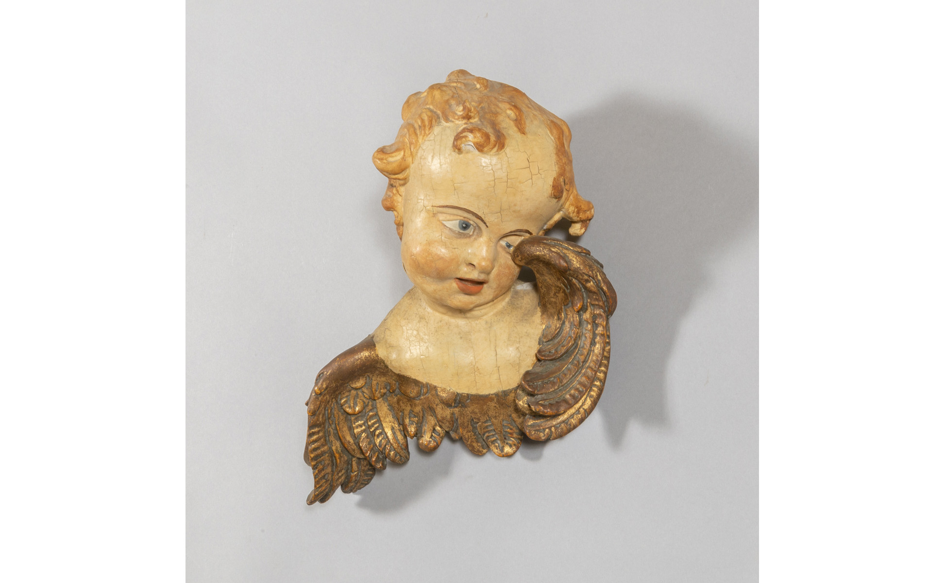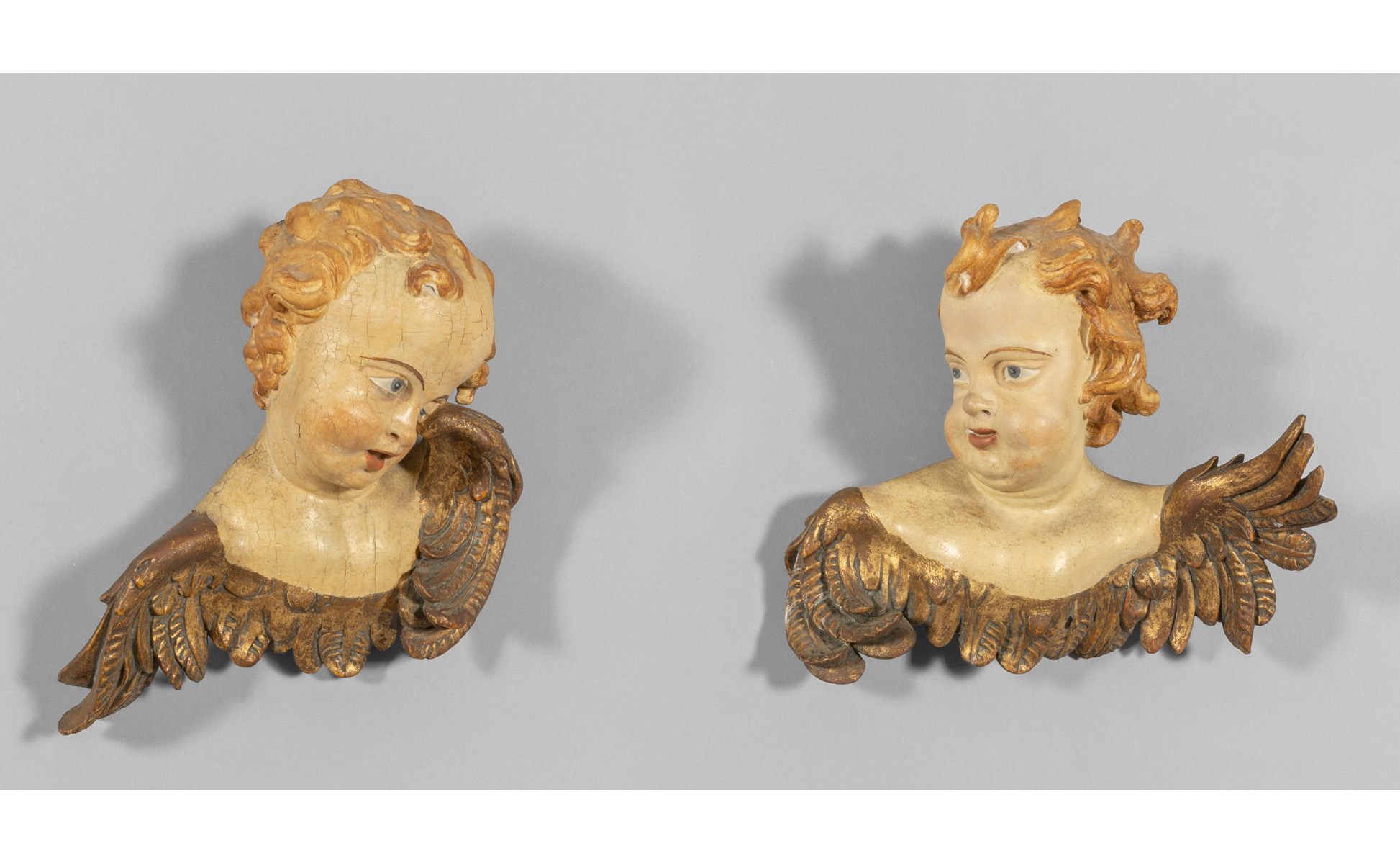 Coppia di teste di angioletti in legno intagliato e policromato sec.XIX