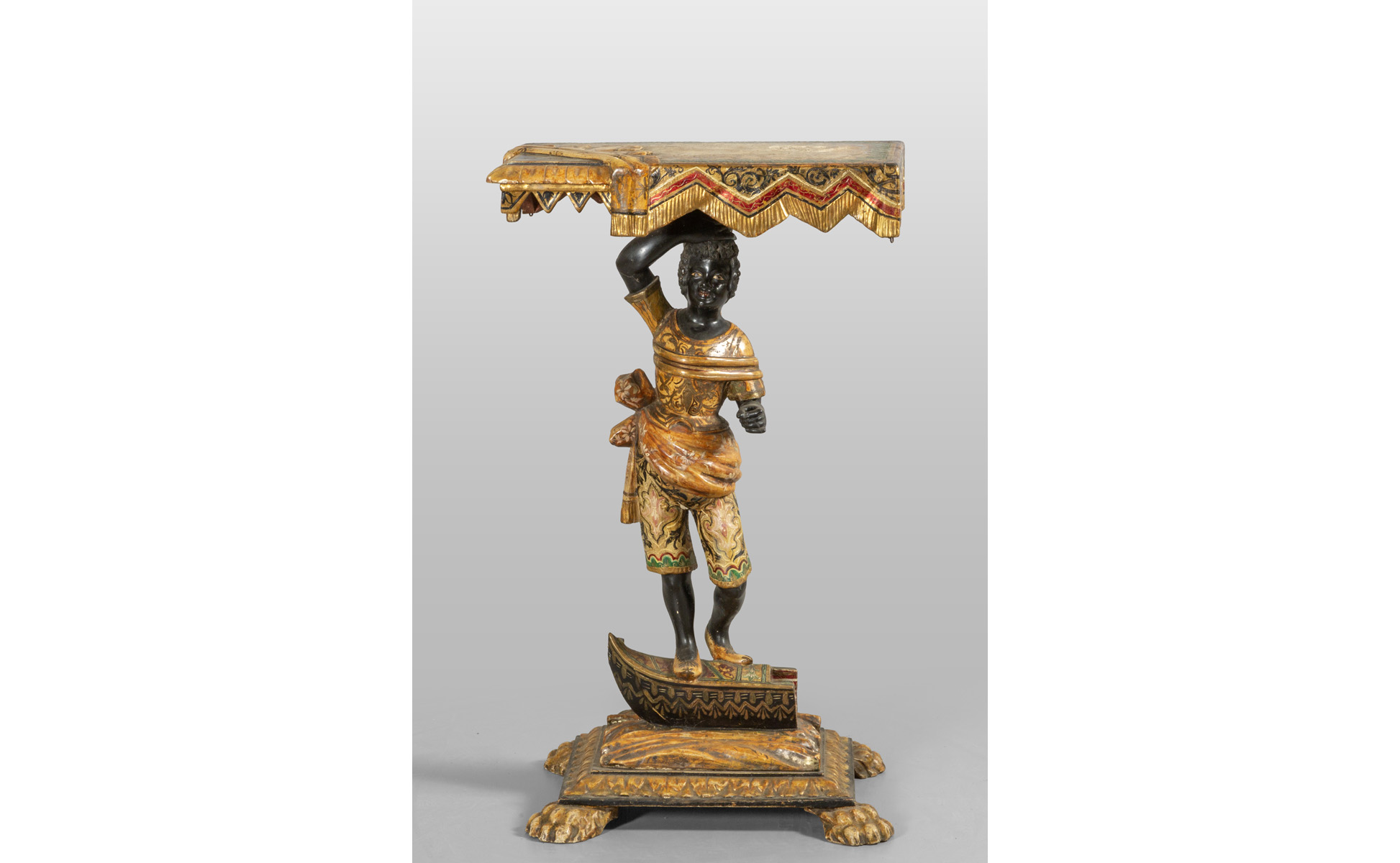 Gueridon raffigurante moro in legno intagliato e laccato Venezia sec.XIX