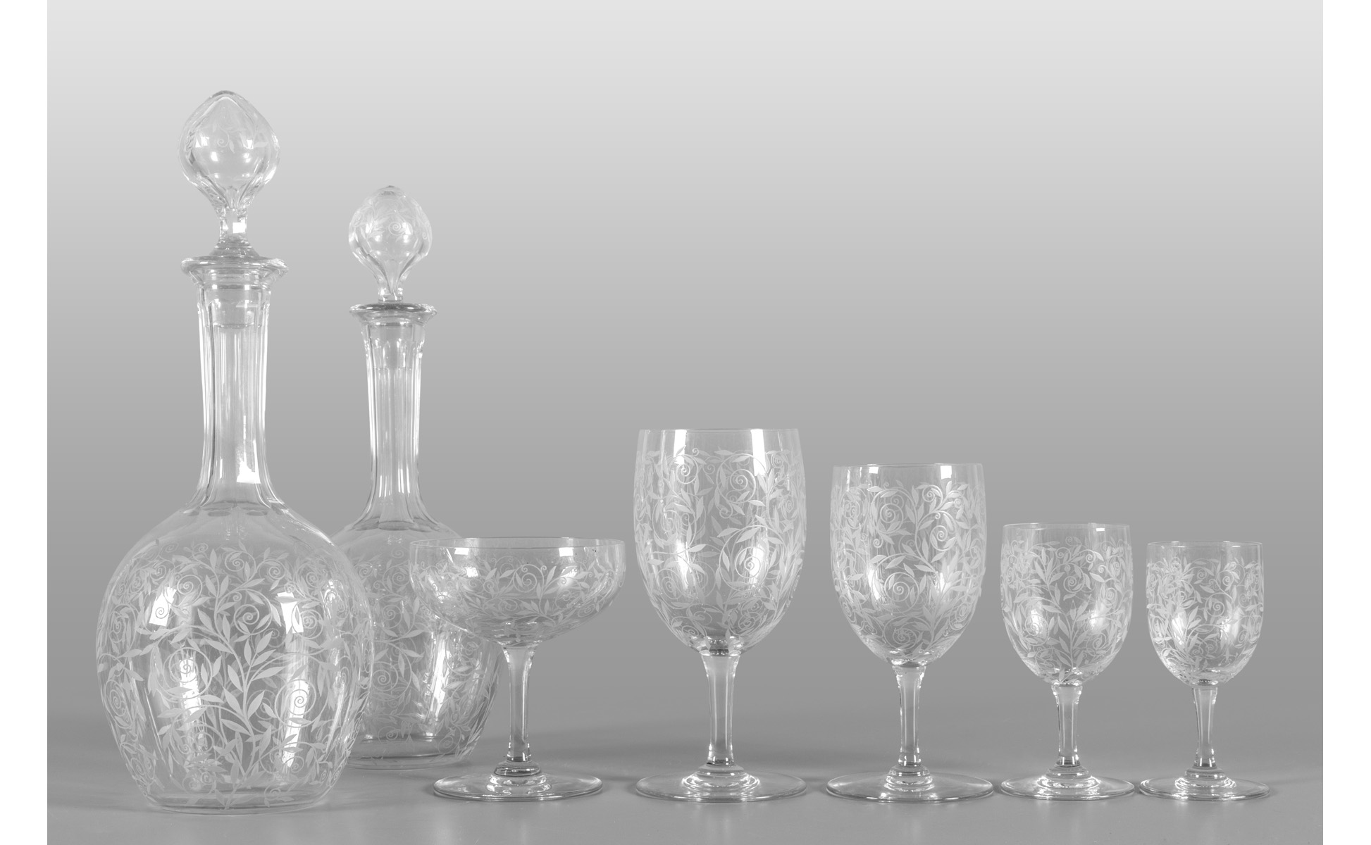 Servizio di bicchieri in cristallo di Baccarat modello Golf Juan Wine Glass composto da 12 bicchieri da vino 12 da acqua 12 da champagne 12 da vino bianco 12 da liquore e 4 bottiglie in alcuni pezzi vecchia etichetta