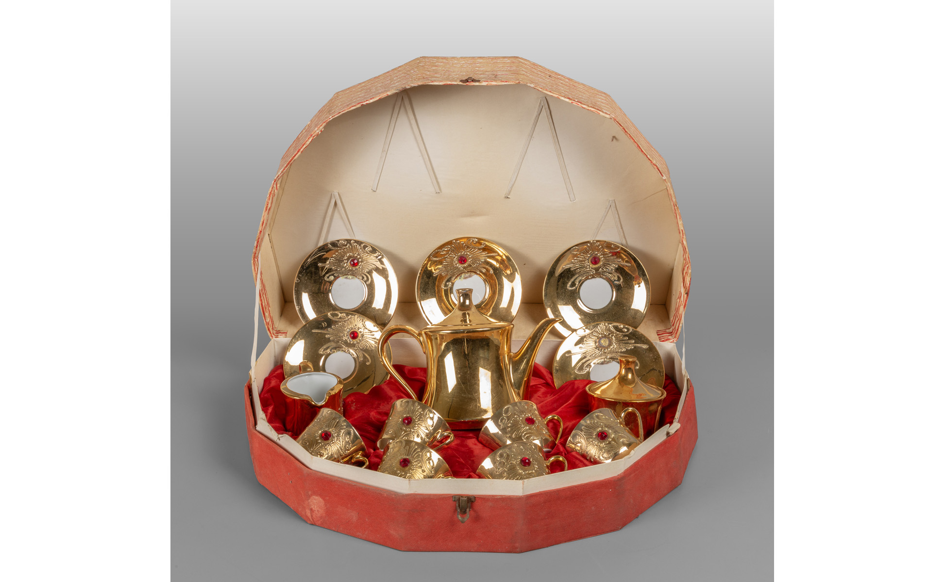 Servizio da thé per sei in porcellana dorata Genova sec.XX
