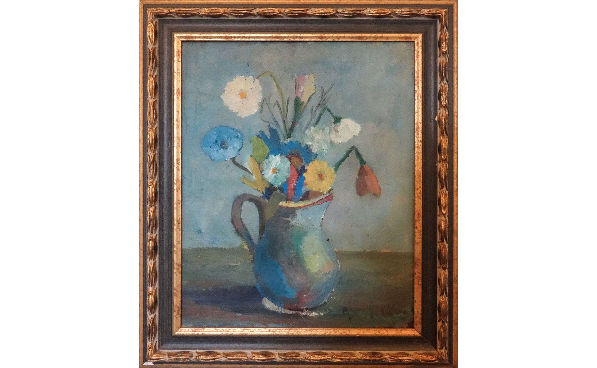 'Vaso di fiori' olio f.to in b. a ds.