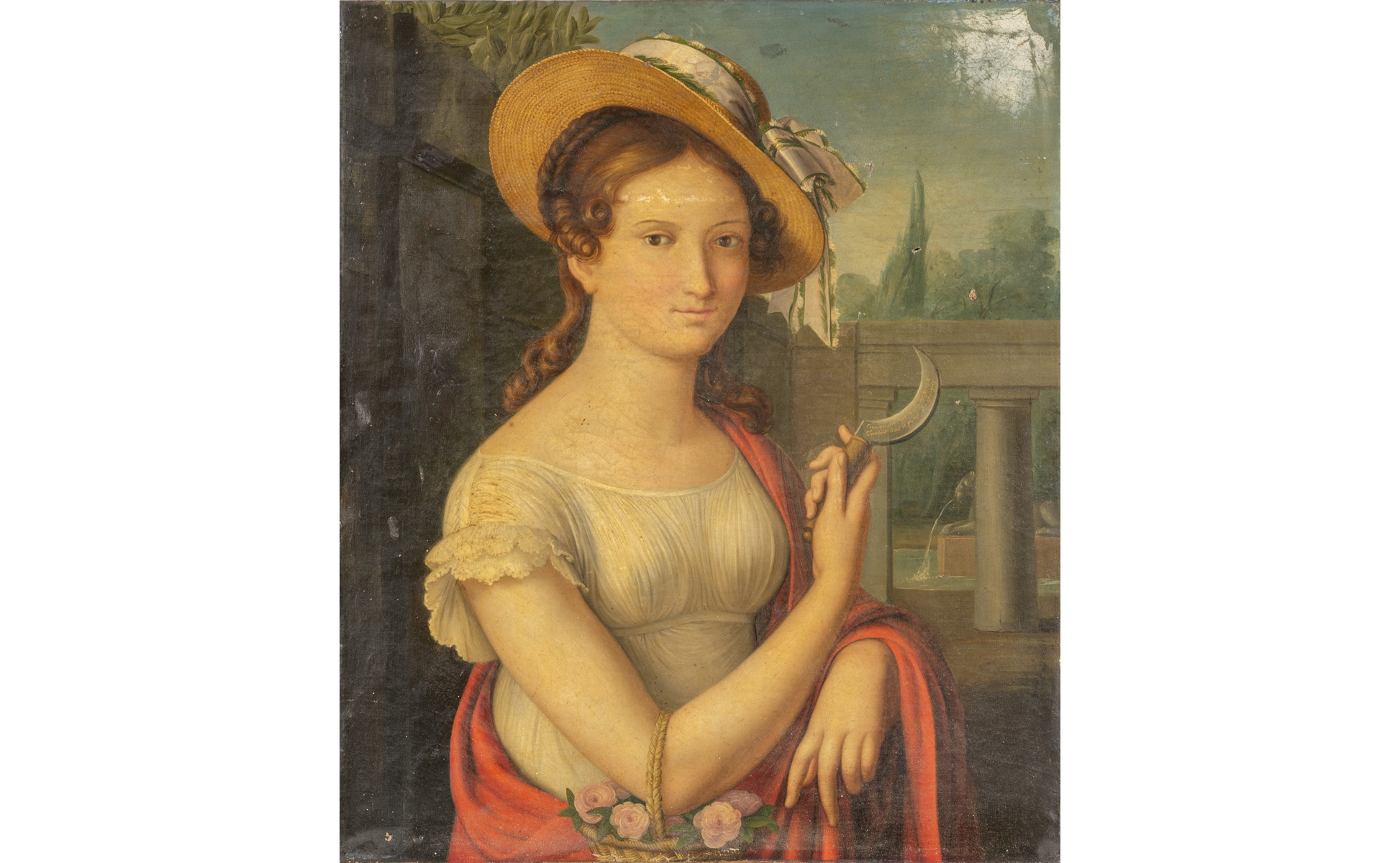 Scuola francese sec.XIX 'Ritratto di bella giardiniera' olio