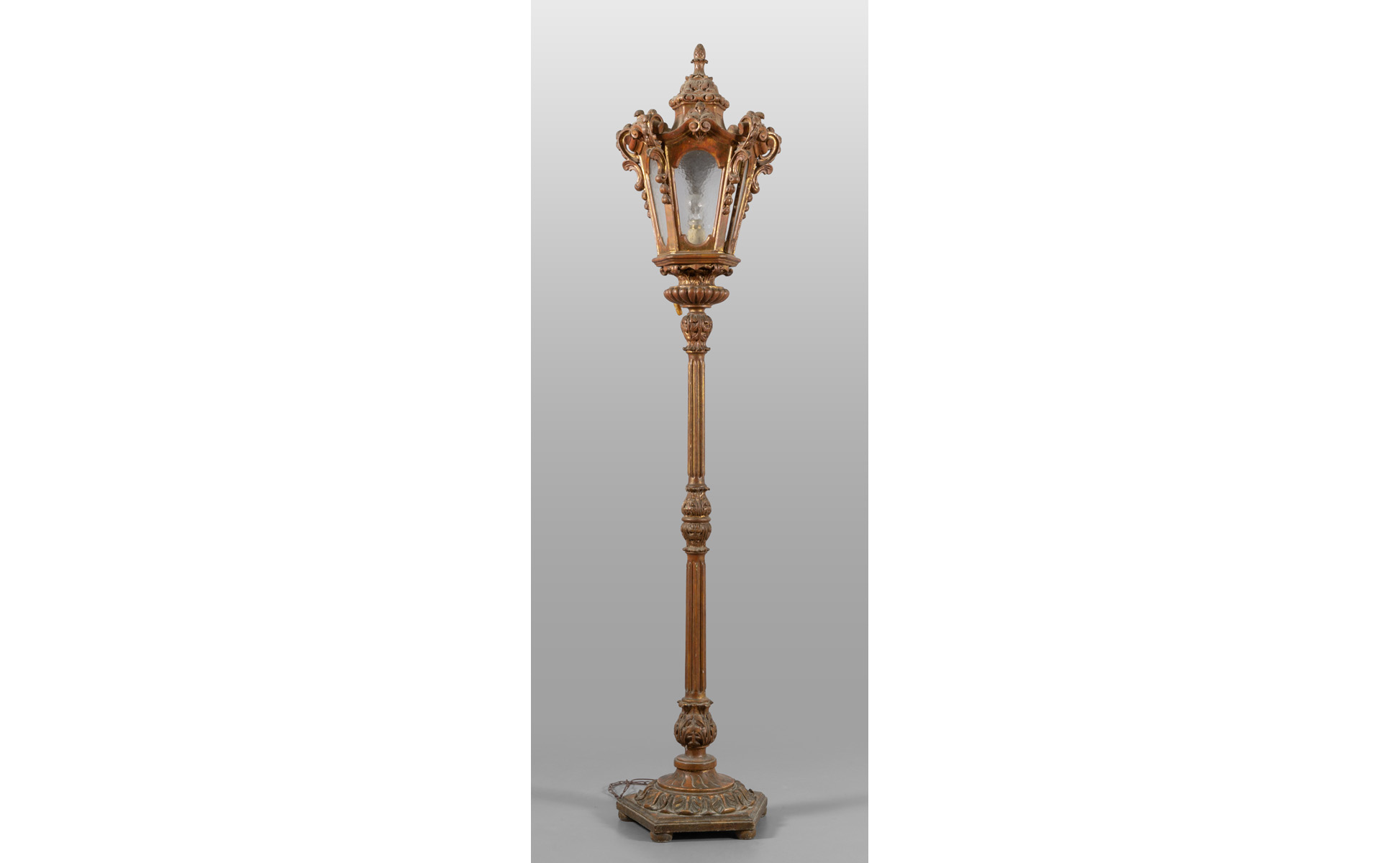 Lampione da ingresso con base in legno finemente intagliato e dorato sec.XIX