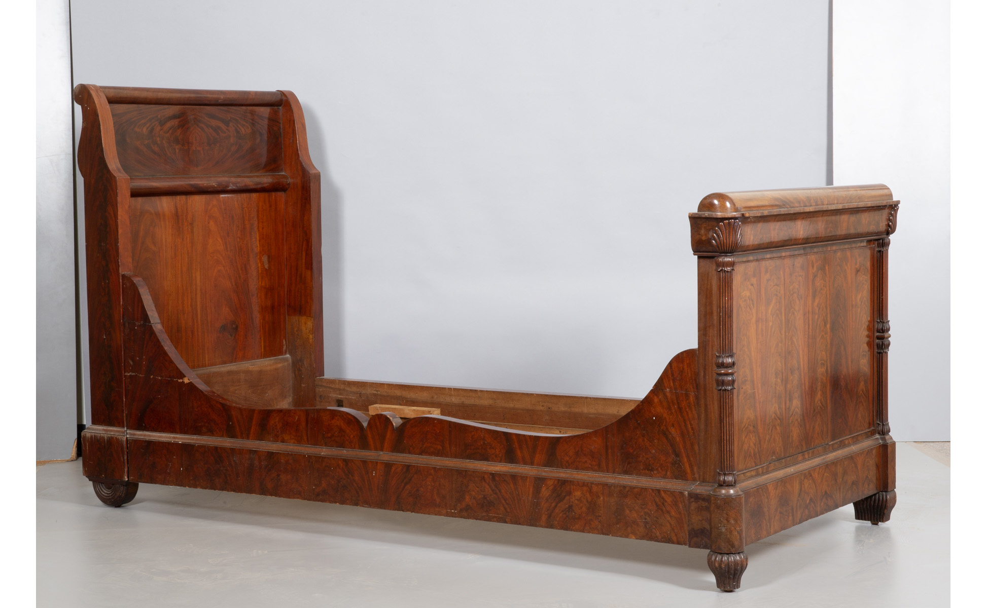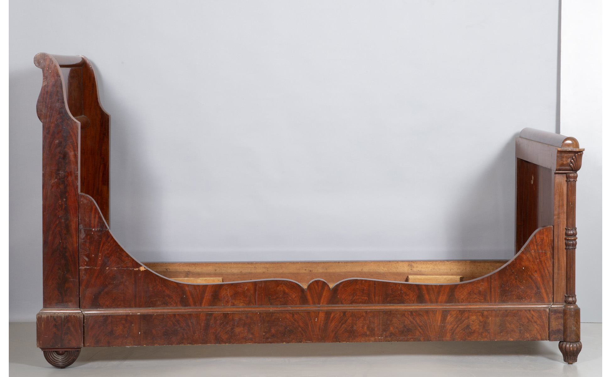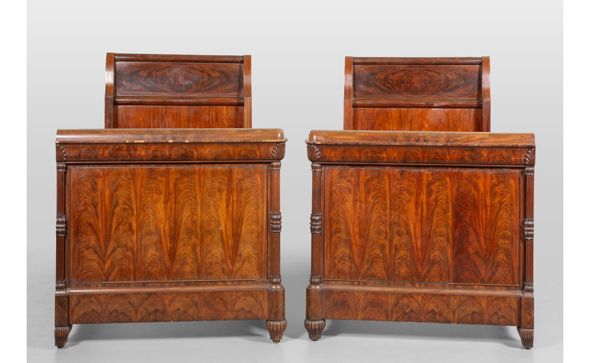 Coppia di letti ad una piazza Carlo X lastronati in radica Lombardia I metà sec.XIX