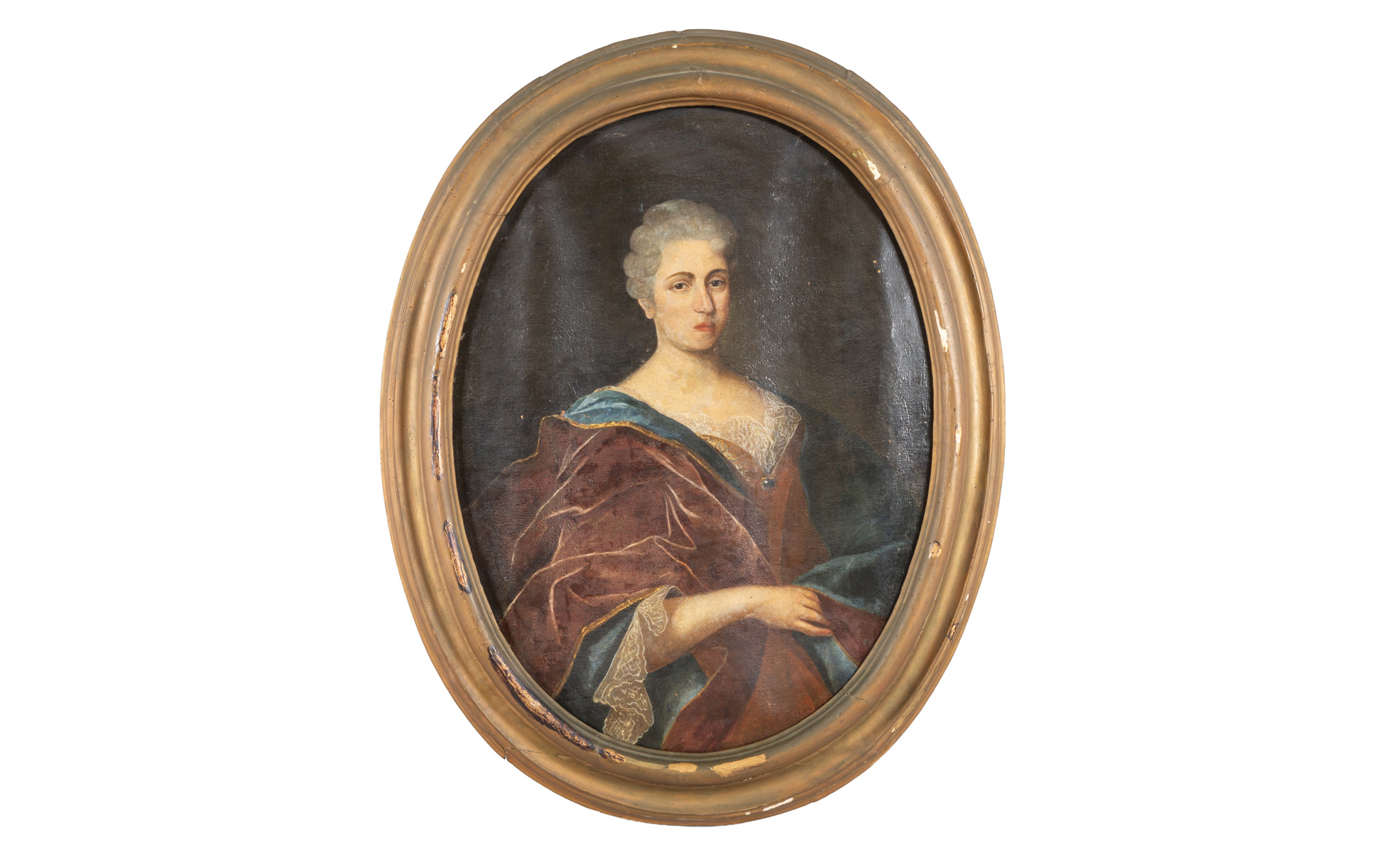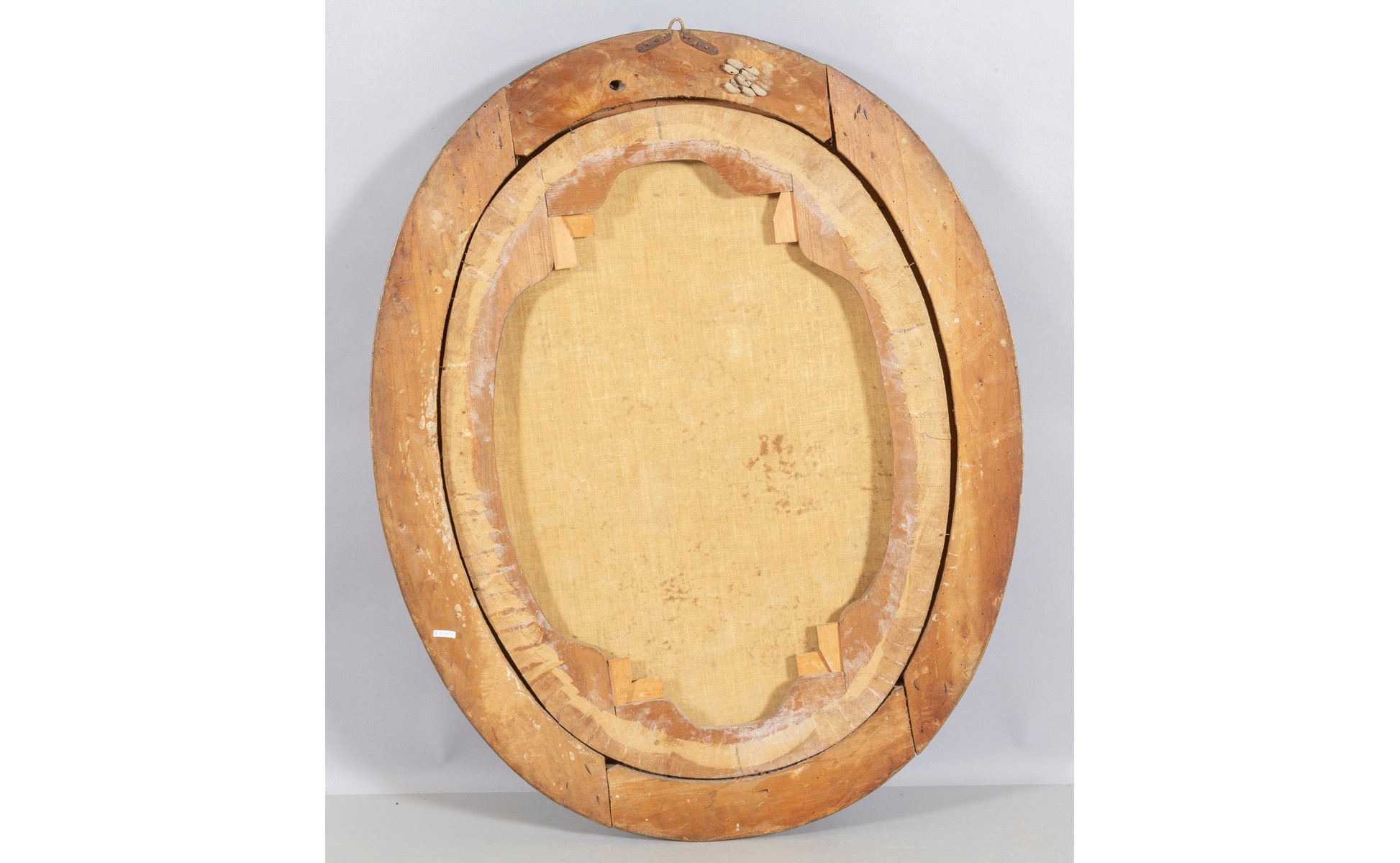 Scuola genovese sec. XVIII 'Ritratto di nobildonna' olio di forma ovale cornice coeva in legno intagliato e dorato