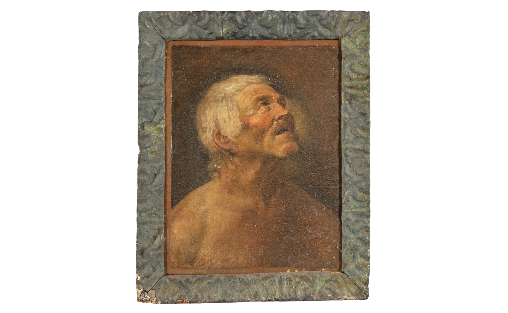 Scuola italiana sec.XVII 'Testa di uomo con capelli bianchi' olio cornice in legno intagliato e laccato
