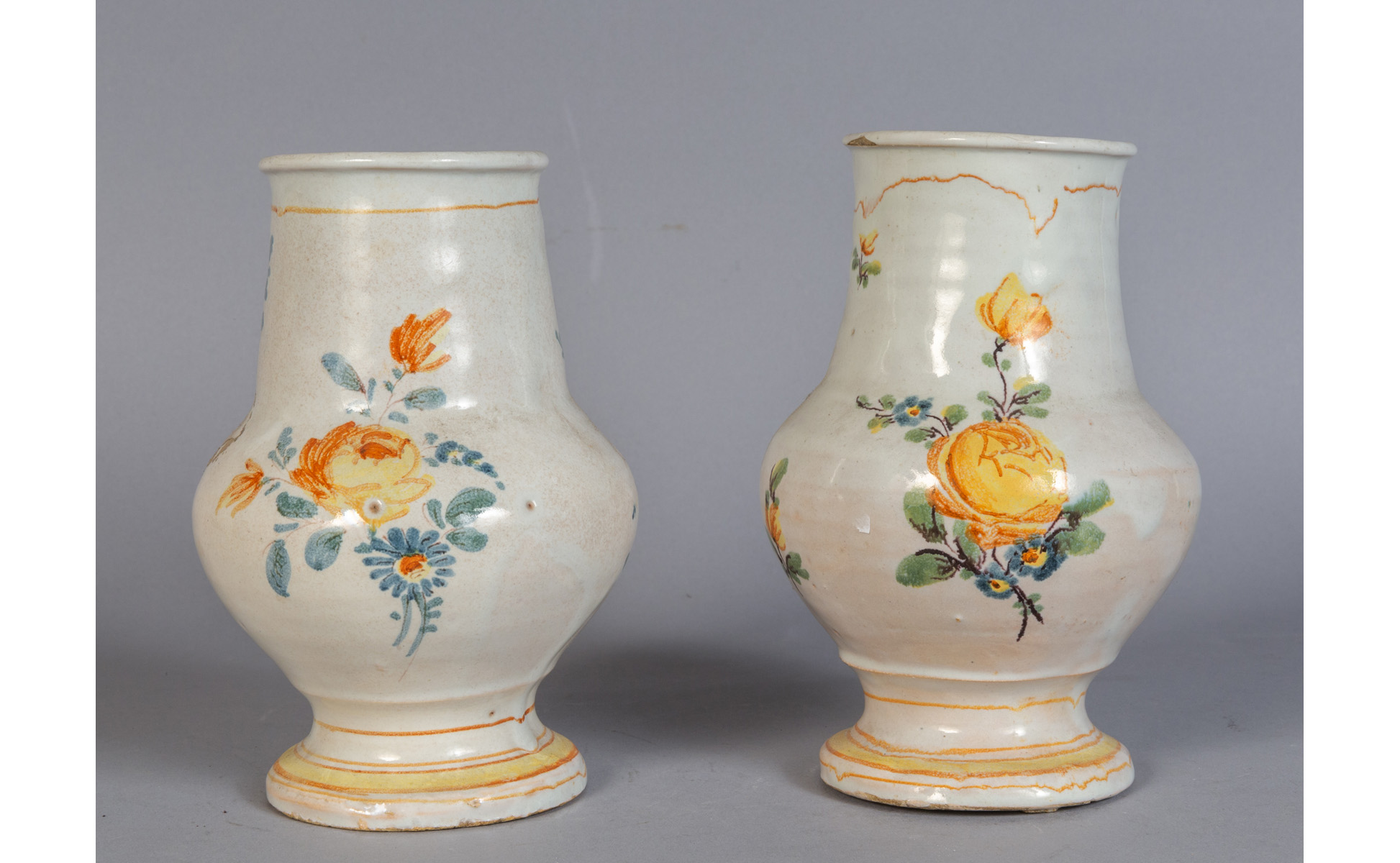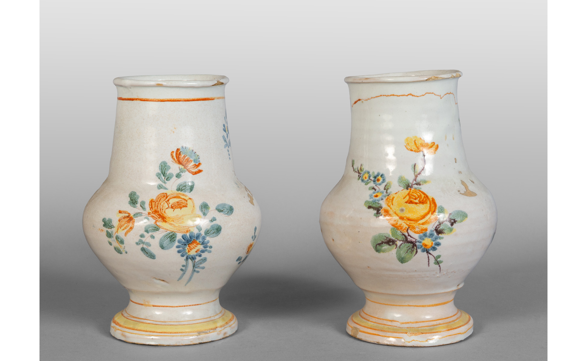 Coppia di portafiori in ceramica decorati in policromia con rose su fondo bianco Savona inizi sec.XIX