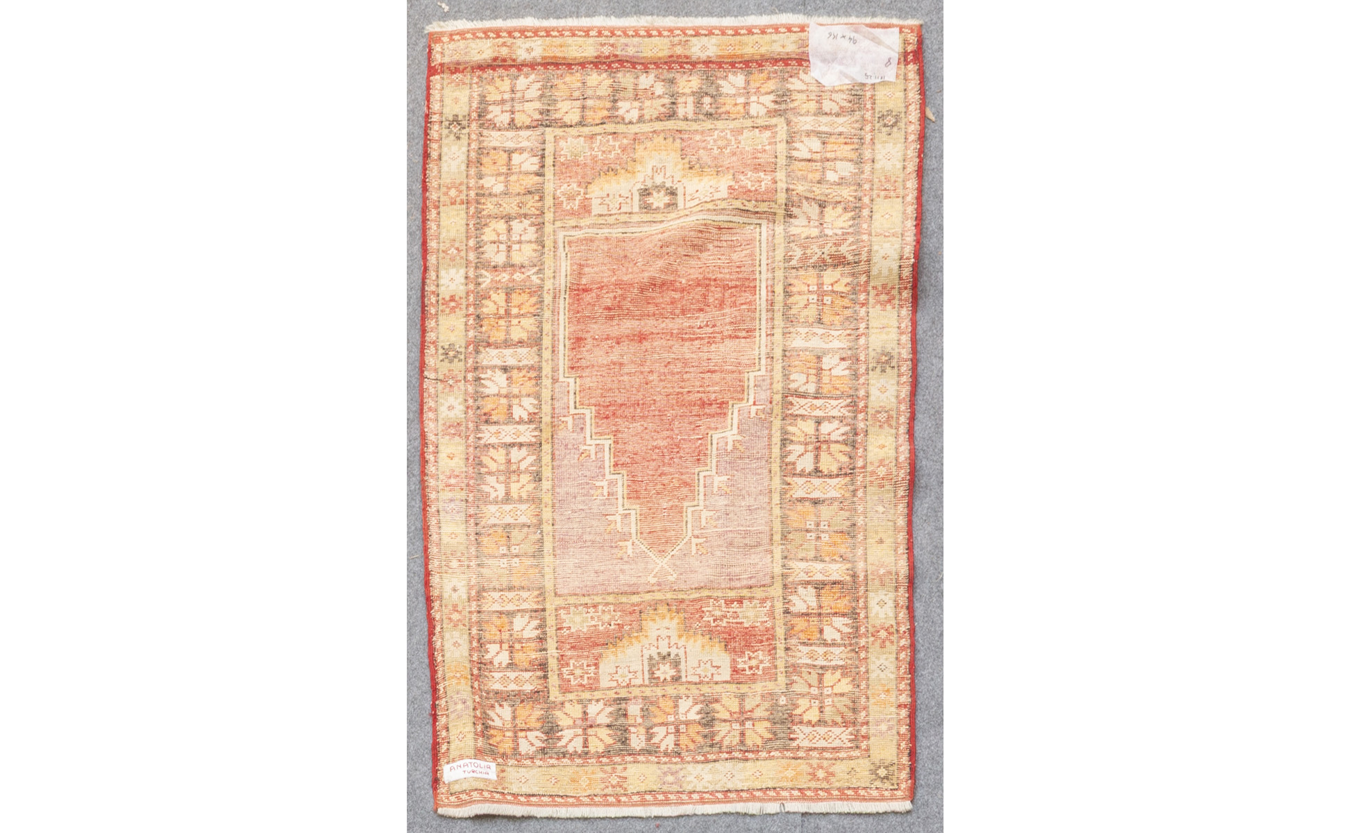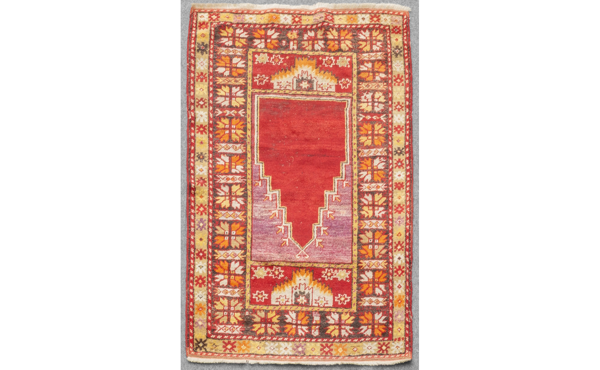 Tappeto a fondo rosso con bordure variopinte sec.XX