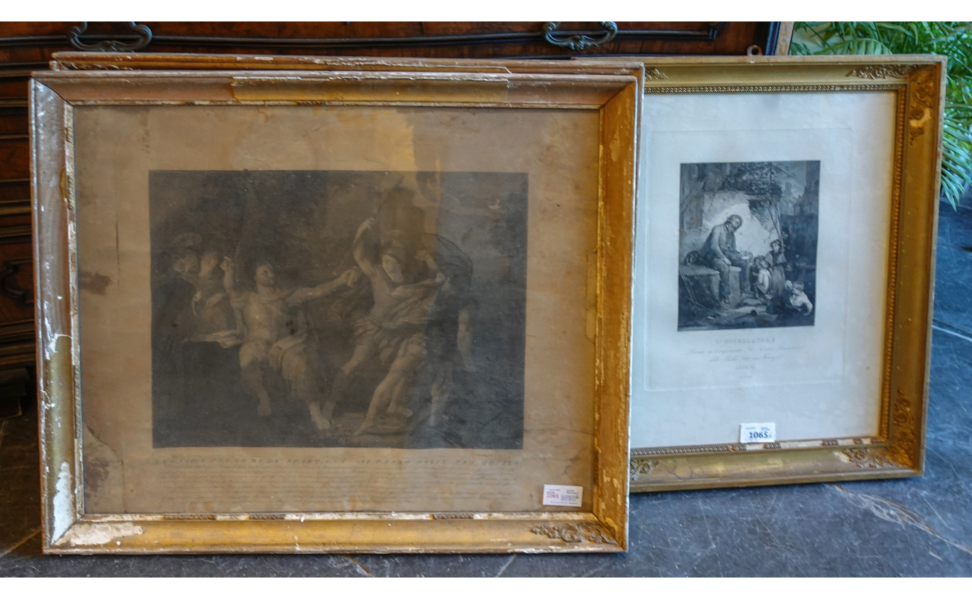 Sei stampe con cornici dorate di varie forme e misure sec.XIX