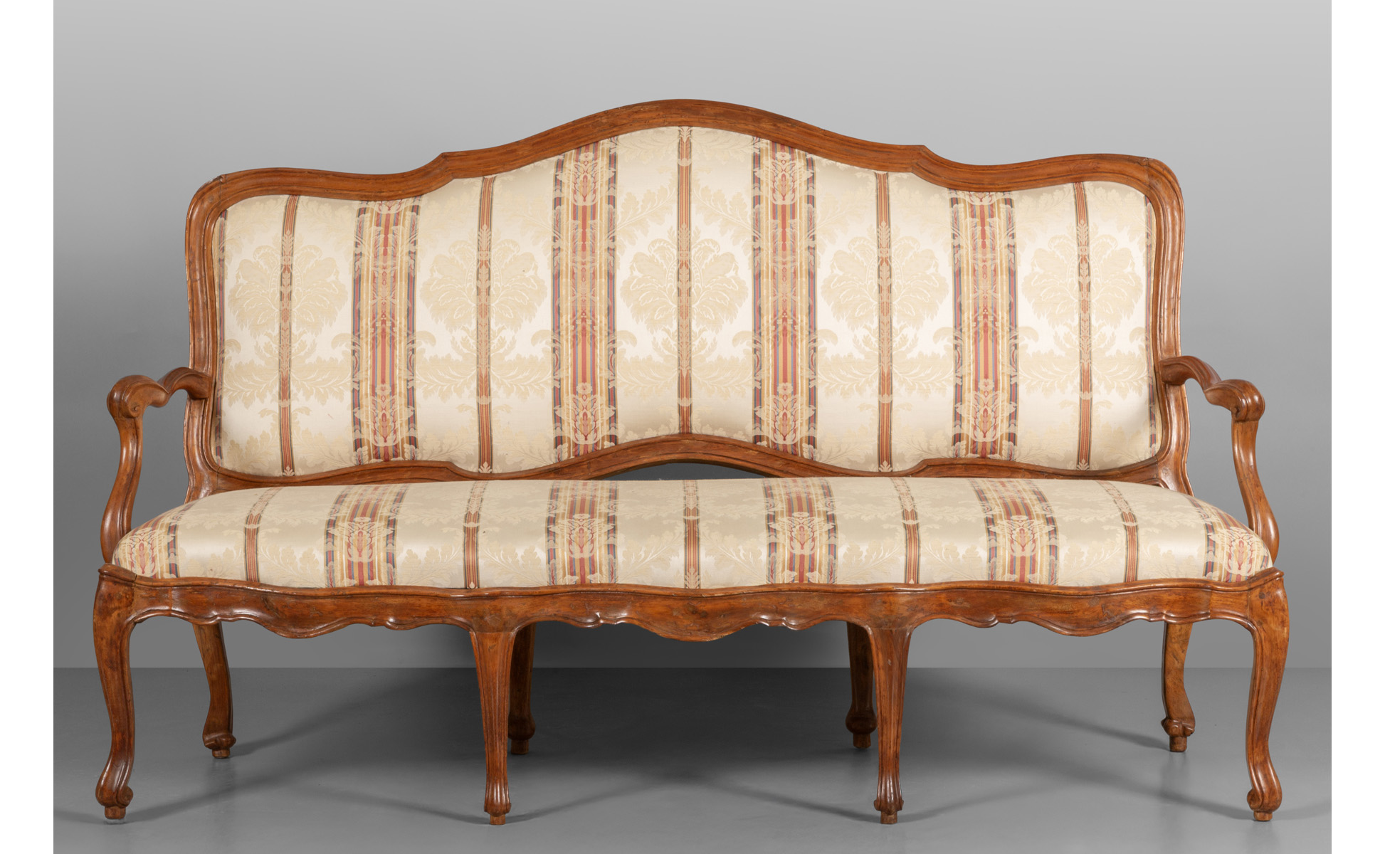 Precedente Lotto 1074 Successivo Aste Boetto - Via Mura dello Zerbino 10R, 16122 Genova Asta di Arte Orientale, Libri Antichi e Antiquariato Asta di Arte Orientale, Libri Antichi e Antiquariato mercoledì 10 dicembre 2025 ore 10:30 (UTC +01:00) MOBILE Divano Luigi XV in noce Genova sec.XVIII