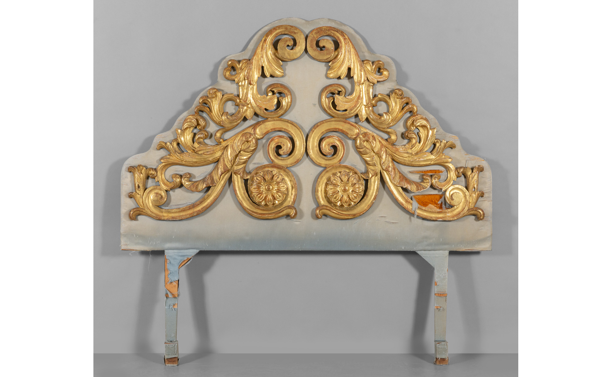 Testata da letto composta da elementi antichi in legno dorato sec.XVIII