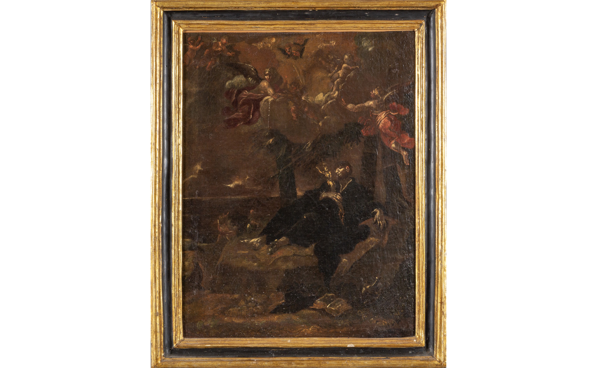 Scuola genovese sec.XVIII 'Frate in adorazione del Crocefisso' olio