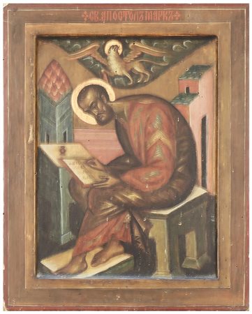 ICONA Scuola russa del XIX secolo San Marco tempera su tavola, lievi difetti...