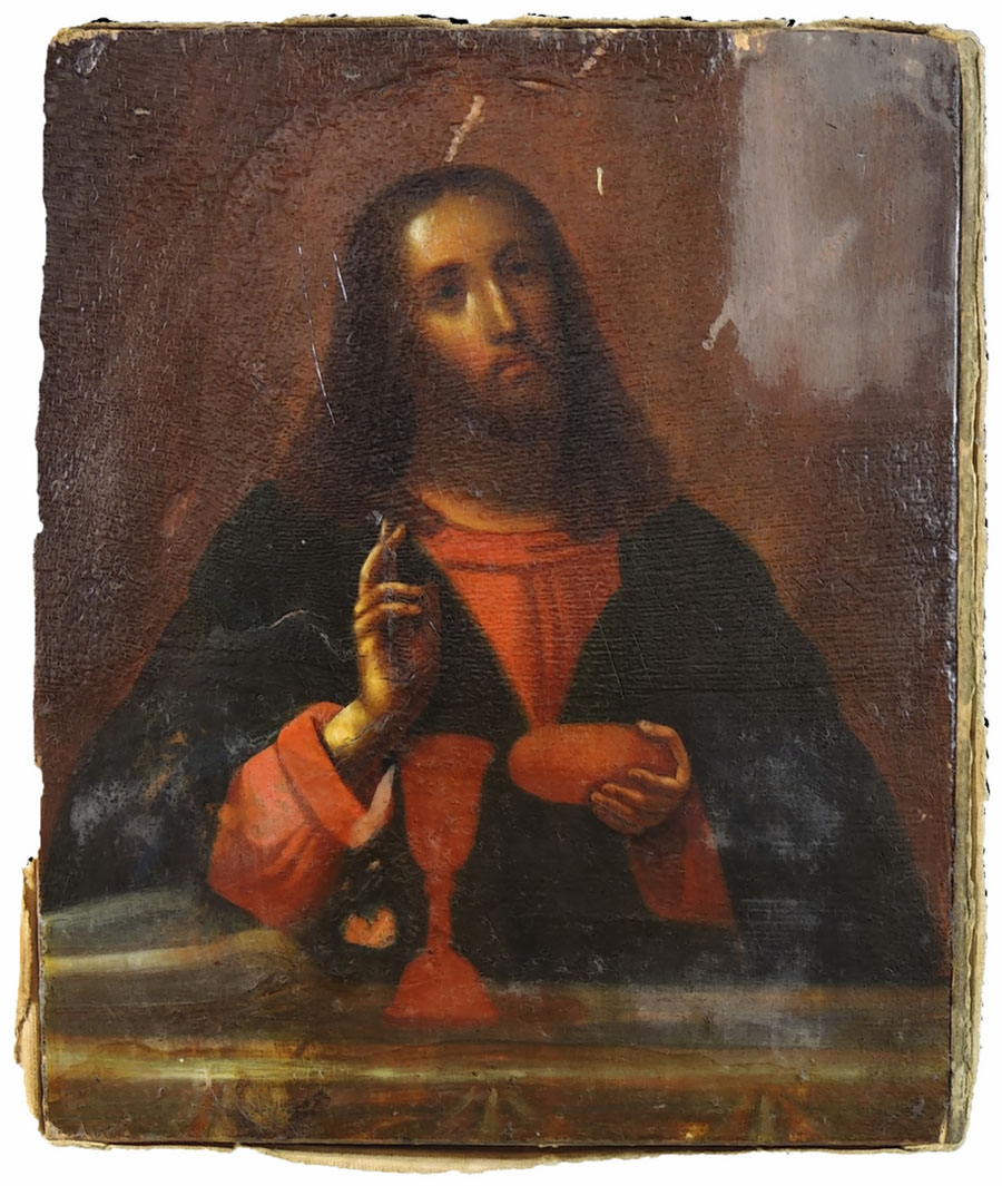 ICONA Russia centrale, metà del XIX secolo Cristo benedicente olio su tavola cm 22x17,5 ICON, CENTRAL RUSSIA, MID 19TH CENTURY, OIL ON PANEL