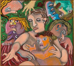 BAJ ENRICO Milano 1924-2003 Vergiate Personaggi 1988 Acrilici e collage su...
