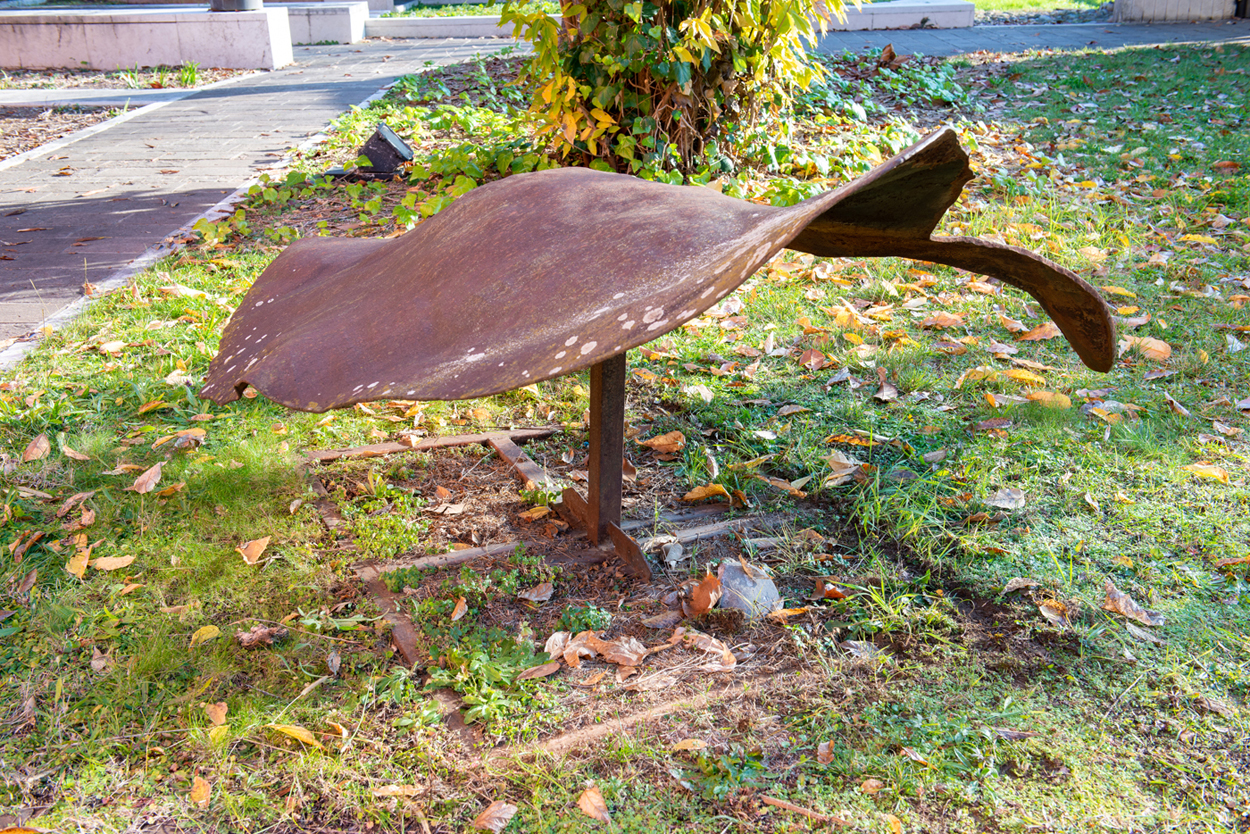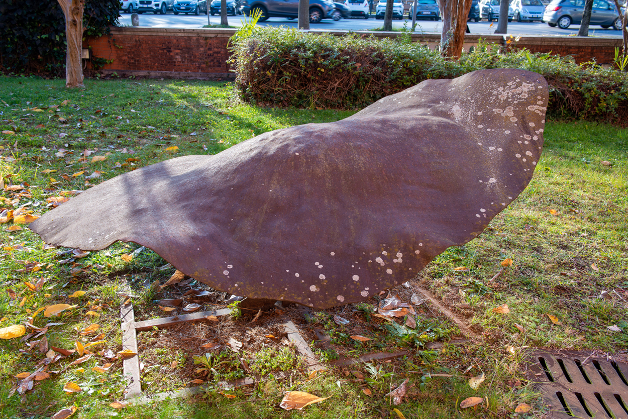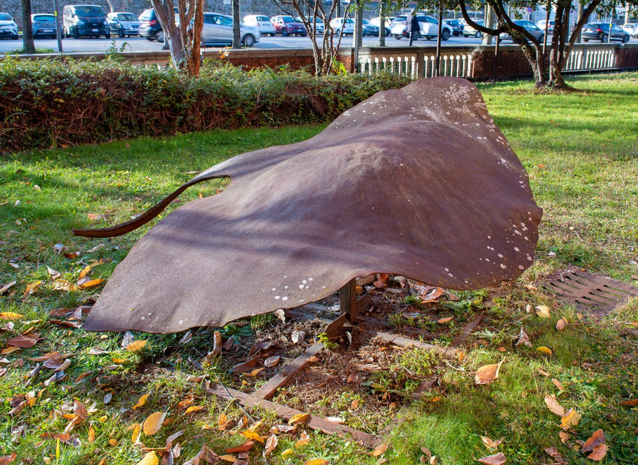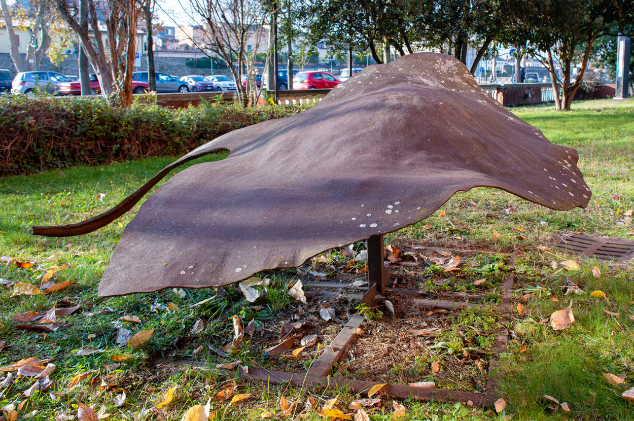 L'opera, in unico esemplare (comunicazione di Angelina Allegro Benetton del 7 dicembre 2020), rappresenta un punto di svolta, verso l'astrazione, nella produzione di Benetton. Così l'artista in una lunga intervista concessa ad Adriano Màdaro. Benetton (pp. 29-30): "Gli anni del laboratorio circolare, quelli che vanno dal 1950 al '67, dal punto di vista della mia creazione artistica rappresentano il mio interesse per la natura, soprattutto gli animali. E quindi la mia necessità di trasformare. Il mio bisogno di allora era quello di capire il "linguaggio" degli animali, che non era il verso, ma la caratteristica. Prendiamo il gatto, animale a me particolarmente caro fin da ragazzo. In quanto felino, mi dà tutti gli spunti per pensare alla molla, al salto. Il mio problema, nel volerlo rappresentare, era di esprimere attraverso l'idea dell'agguato, della spinta, del salto. Perché bisogna osservare bene tutto ciò che poi si vuole interpretare. Dunque il gatto prima si mette in posizione di attenti, immobile, poi fiuta, tende baffi e orecchi, l'occhio fisso, quindi si raccoglie armoniosamente in quell'atteggiamento che gli consentirà infine di realizzare il salto. Il salto è il suo "linguaggio". Perciò una scultura del gatto io la concepivo solo come salto. In ogni animale c'è il suo dinamismo, bisogna osservare con criterio indagatore". Quel che vale per il gatto, vale per la manta, il cui tratto distintivo è il movimento simile al volo, nelle profondità e sopra il pelo dell'acqua. L'opera in asta si presenta in effetti come la lavorazione di una singola lastra. Ecco allora Benetton affermare che "dovendo fare un bilancio, ciò che reputo importante di quegli anni è la mia ricerca sulla sintesi della lastra di ferro". Il "mio confronto, il confronto di tutta la mia vita, è con il ferro, soprattutto con la lastra, oggetto inanimato e svilito dall'industria; eppure quella superficie mi ha sempre esaltato, come la tela per un pittore". "Mi sono imposto di rispettare la lastra imprimendole i miei interventi di sintesi, come un'impronta del mio passaggio (valorizzando n.d.r.) la profondità che ne ricavavo battendola, facendola vibrare pur conservandola esattamente come lastra". "Vi era solo un ragionamento agganciato ad una esperienza precedente: cioè aggiungere continuamente qualcosa, ma non aggiungendo, togliendo". Dalla metà degli anni Sessanta, "ho abbandonato la figura per dedicarmi solo alla lastra apportandovi tagli e vibrazioni".