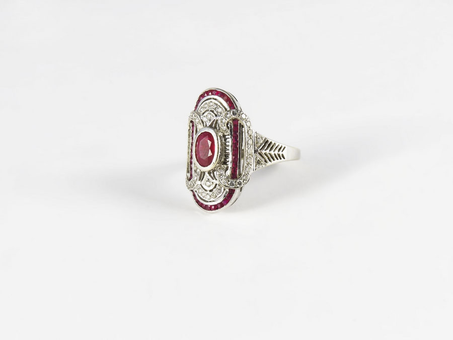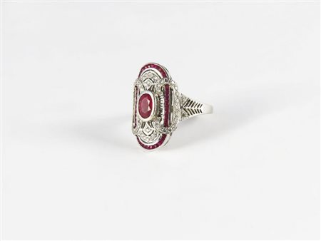 ANELLO IN ORO BIANCO, RUBINI E DIAMANTI realizzato in stile Decò rubino cts...