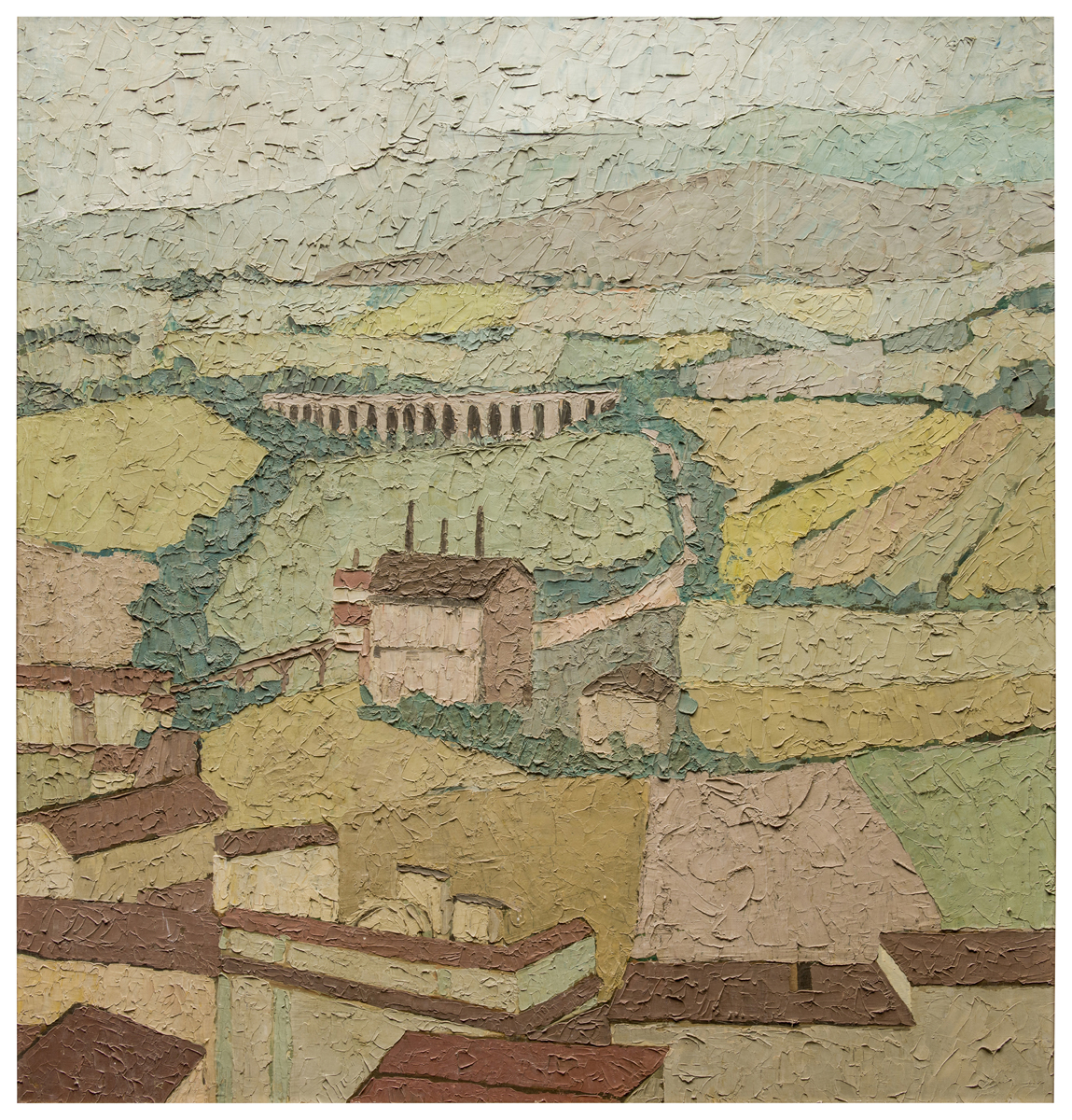 L'opera appartiene alla prima produzione di Garofoli, allorquando l'artista era impegnato nel costruire la propria carriera attraverso la partecipazione a competizioni e premi. Venne infatti presentata al "V Premio di Pittura e bianco e nero" di Sassoferrato, nell'agosto 1955, dove con ogni probabilità fu acquisita dalla Cassa di Risparmio di Fabriano e Cupramontana con un premio acquisto. L'inclinazione morandiana dell'autore, che procede per semplificazione del paesaggio e ricerca di una forte continuità cromatica, sono già del tutto evidenti.