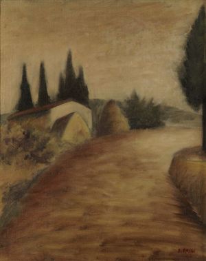 ROSAI OTTONE Firenze 1895-1957 Torino Strada grevigiana 1962 Olio su tela...