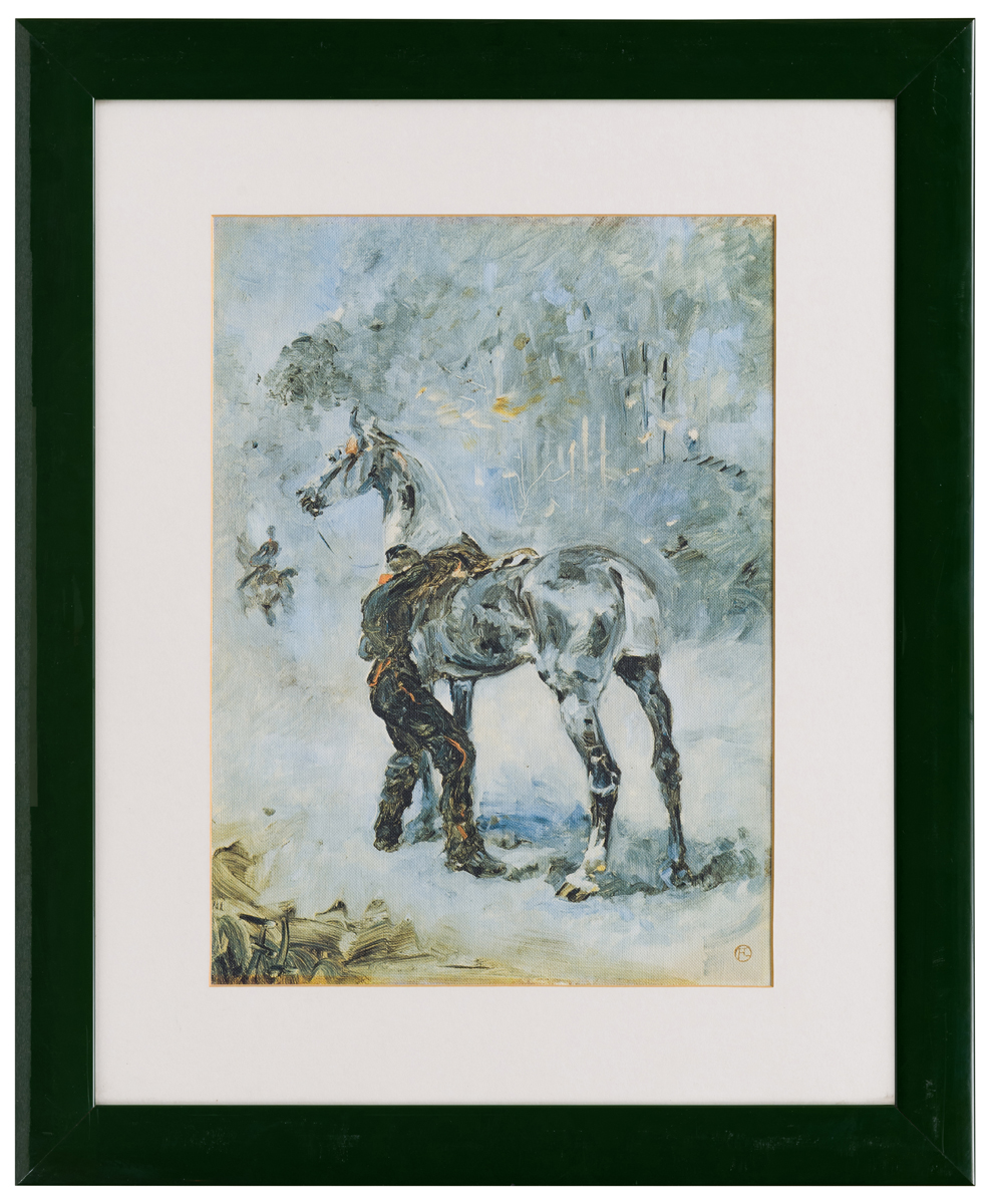 L'opera è una riproduzione recente di un dipinto del 1879 di Henri de Toulouse-Lautrec, conservato al Musée Toulouse-Lautrec di Albi, "Un artilleur sellant son cheval".