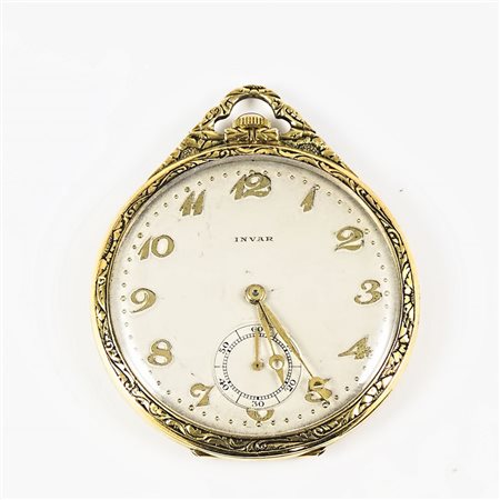 OROLOGIO DA TASCA IN ORO GIALLO Invar, Anni Quaranta cassa cesellata con...
