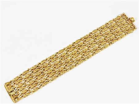 BRACCIALE IN ORO GIALLO Anni Cinquanta realizzato a fascia morbida con maglie a motivi floreali gr 42,5 FLORAL DESIGN YELLOW GOLD BRACELET FROM THE FIFTIES