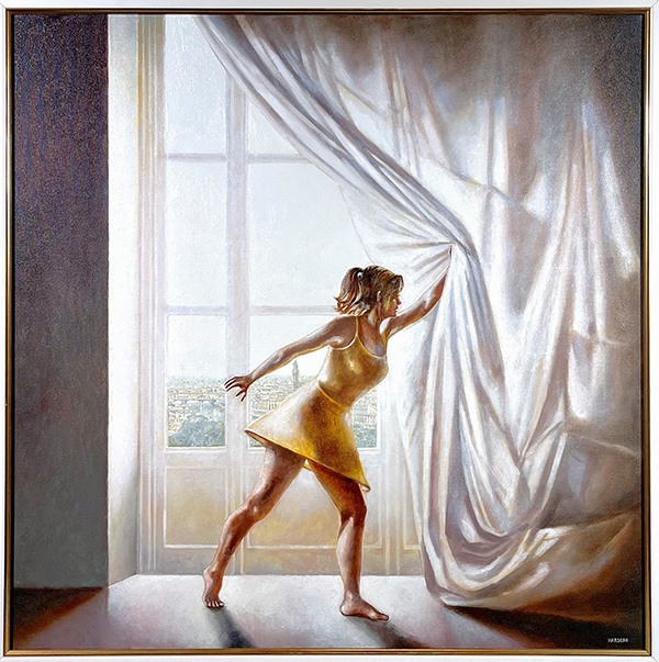 NARDONI SERGIO "Good Morning mr. Nardoni" olio su tela, titolo firma e numero di archiviazione a retro. Opera registrata presso l'archivio ufficiale Nardoni al n° 1635. Autentica dell'artista e certificato di autenticità F.lli Orler su fotografia 70x70 cm